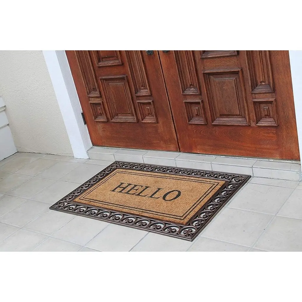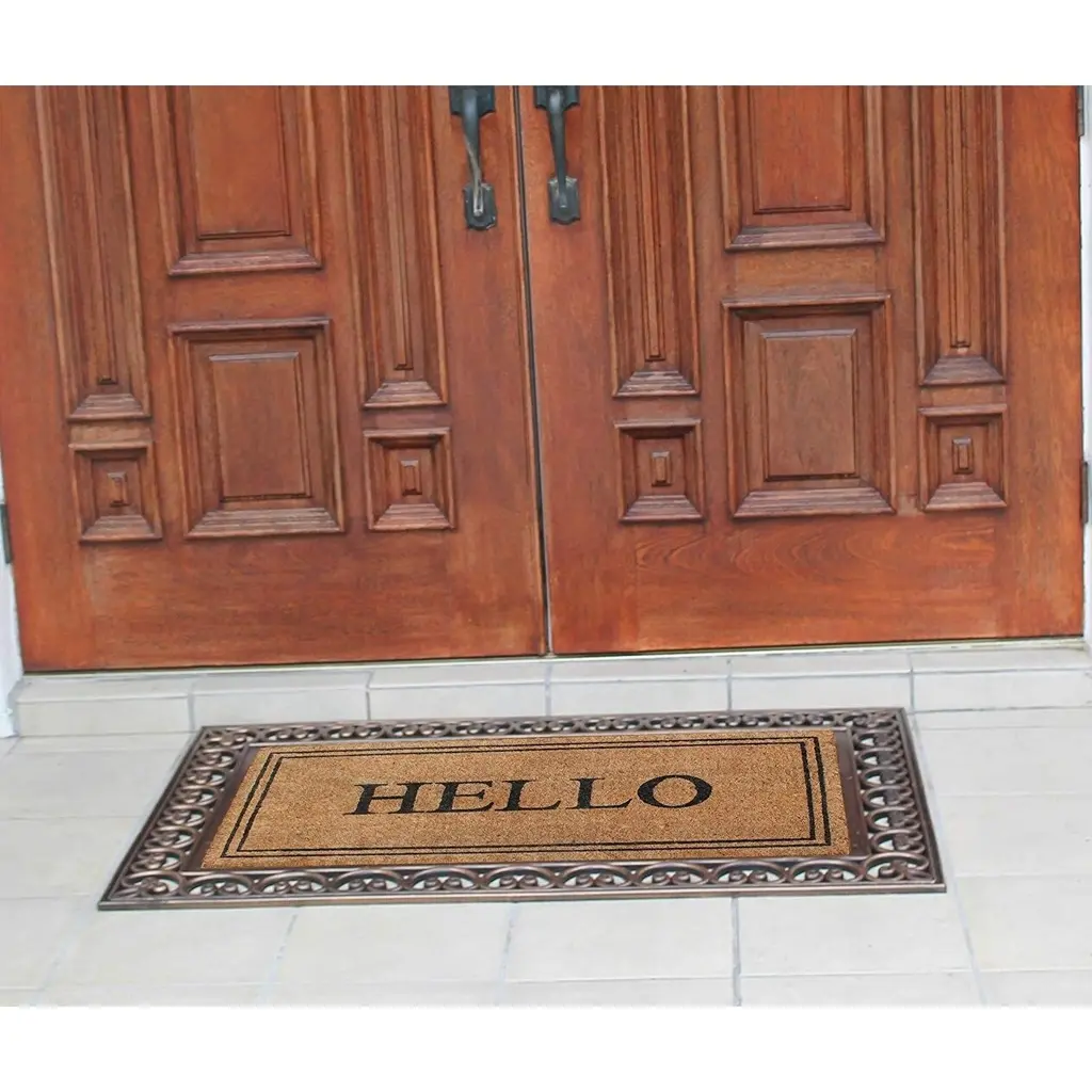 A1hc Hello Rubber And Coir Classic Paisley Border Extra Large Double Doormat, 30"x48" - Bronze