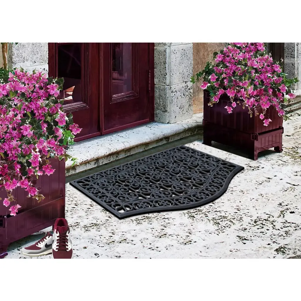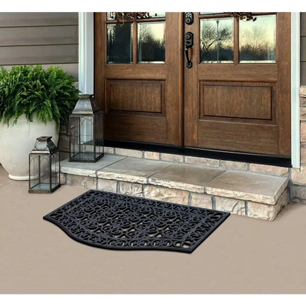 This stylish & unique doormat makes a perfect addition to any porch, patio area or door. Use this mat to catch dirt as your guests enter your home or as decoration to enhance your front patio. This door mat withstands seasonal changes & can be used outside all year long. This transitional style rubber Doormat is the perfect way to spruce up your floors & home decor while maintaining a level of practicality. The large size doormat is idea for double door entrance.