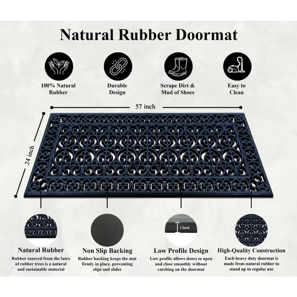 A1hc Large Outdoor Doormat, 24"x57", Natural Rubber Grill Drainable Design & Anti Fatigue Door Mat
