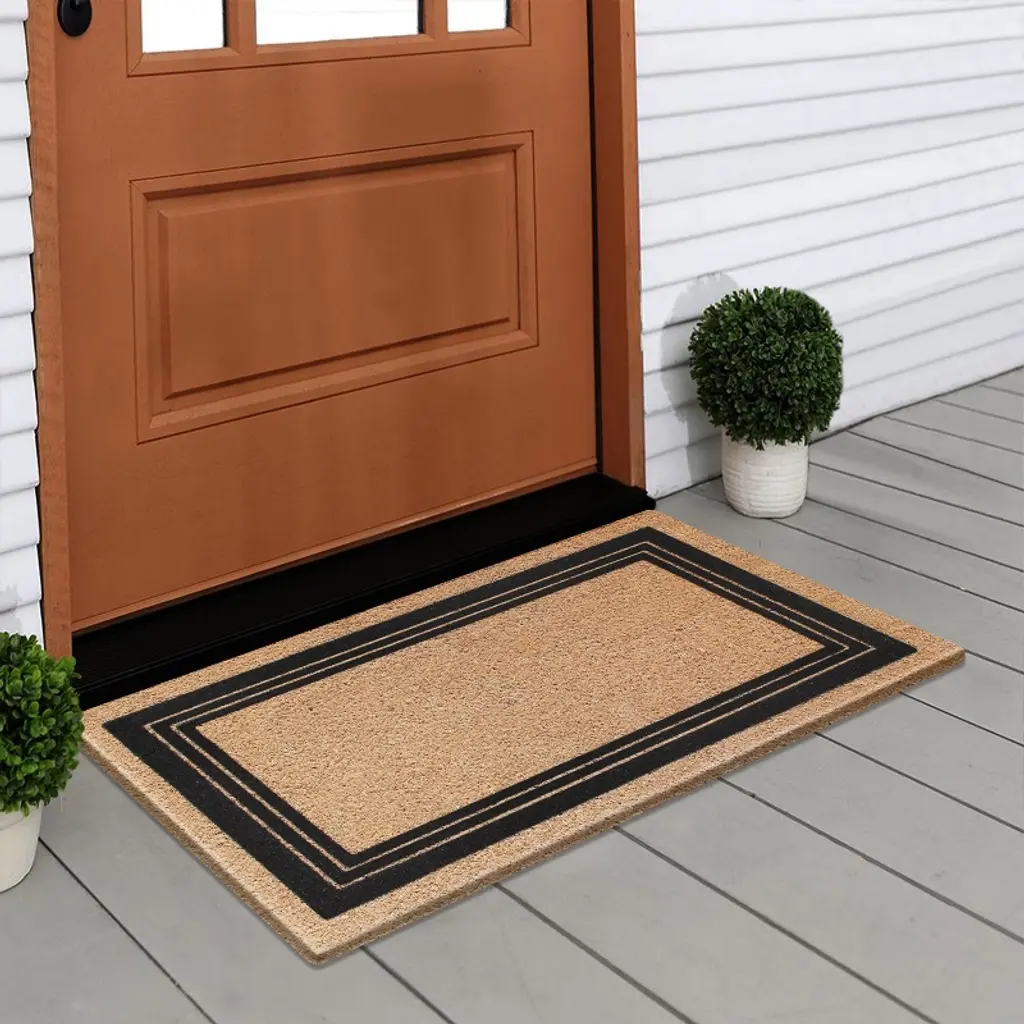 A1hc Natural Coir And Pvc Backing Classic Border Flock Door Mat, Anti-shed Treated Durable Doormat, 30"x60"
