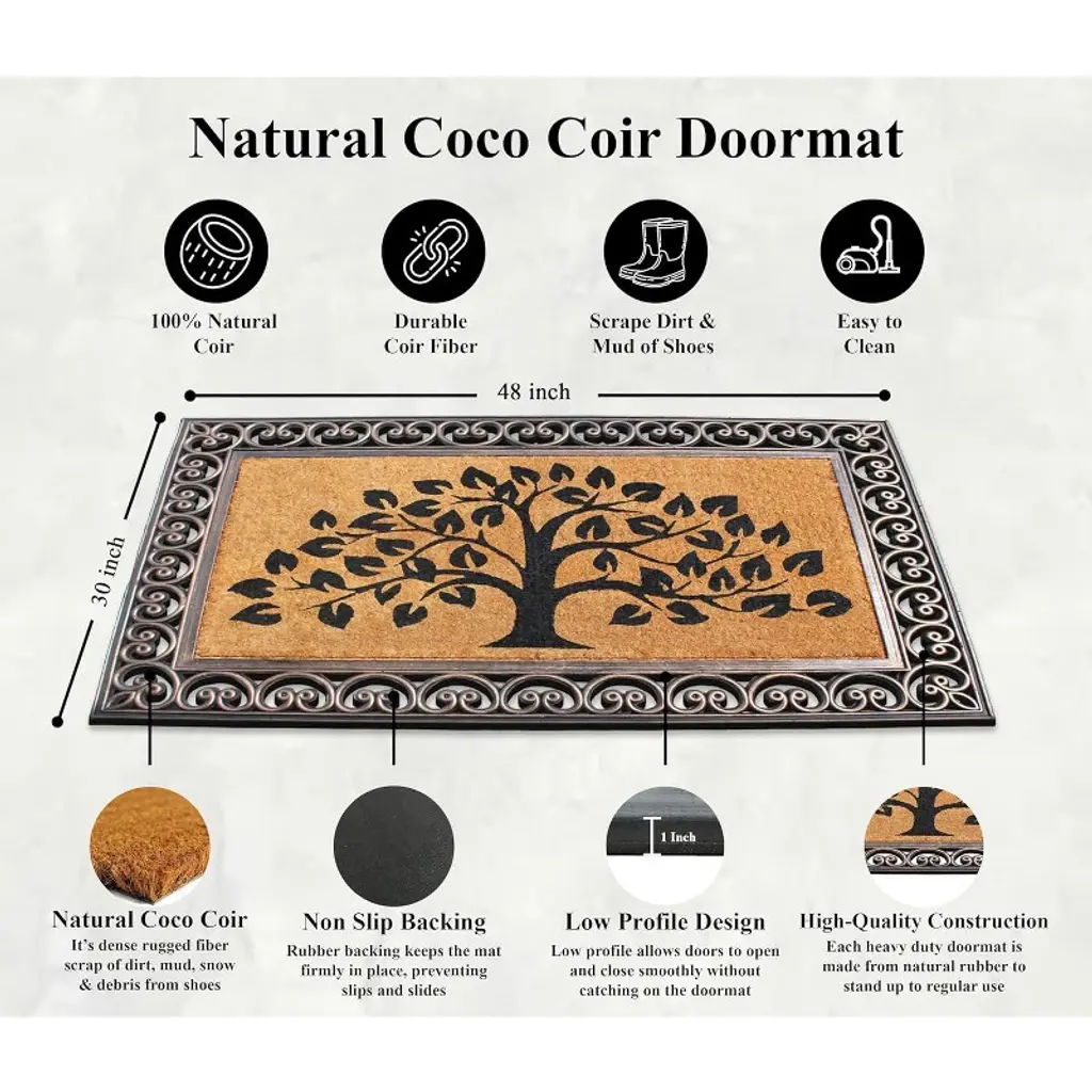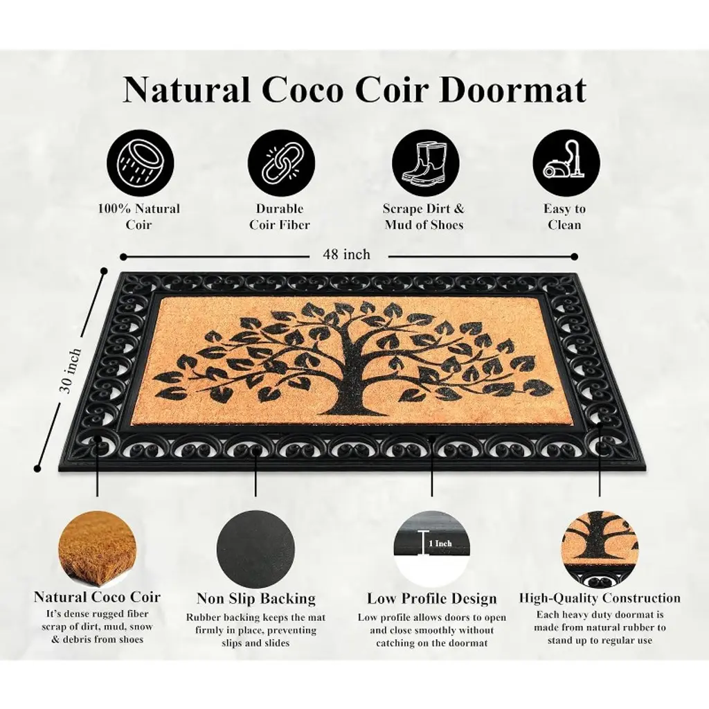 A1hc Natural Coir & Rubber Door Mat, 30"x48", Anti-shed, Fade-resistant Outdoor Entrance Doormat Welcome Tree Bronze