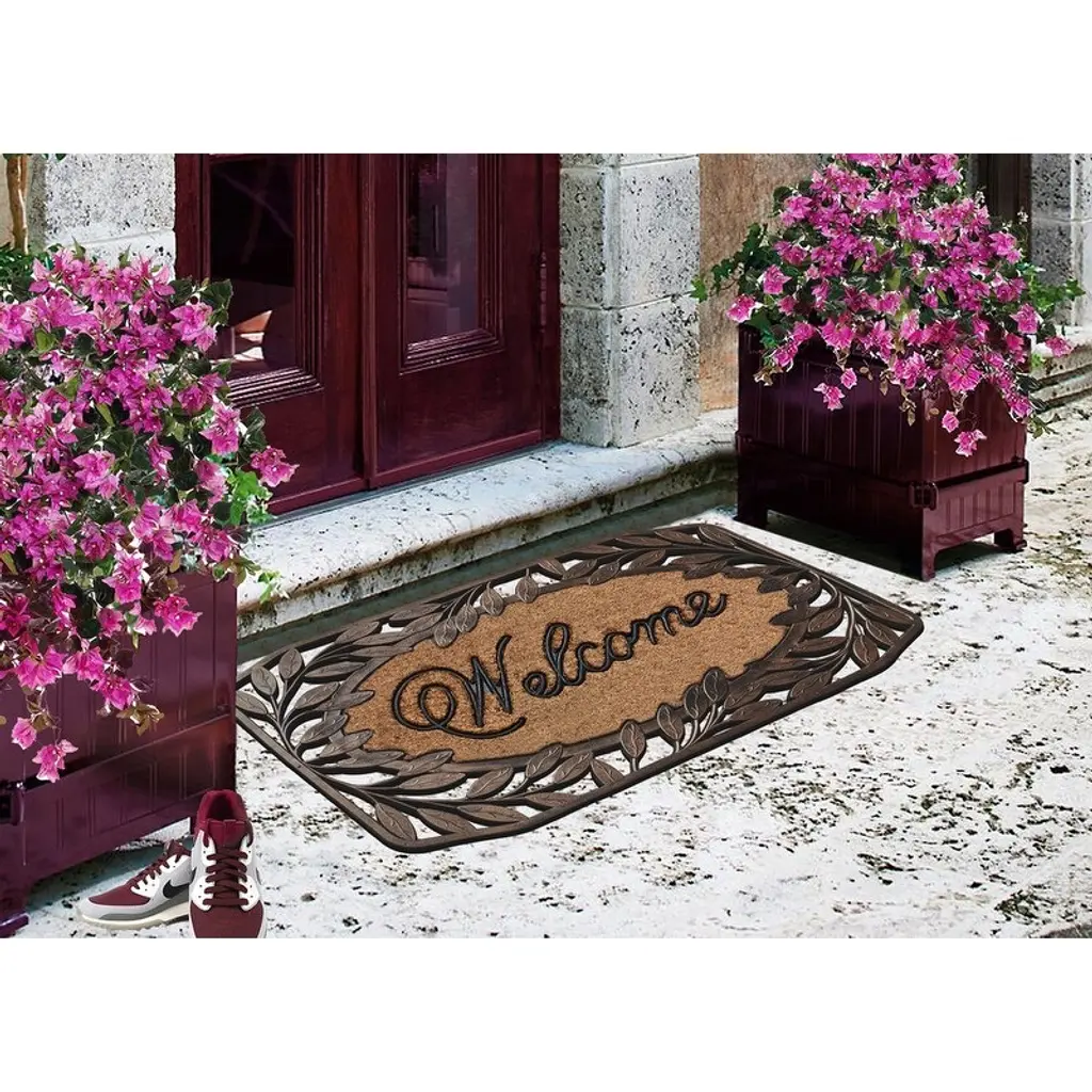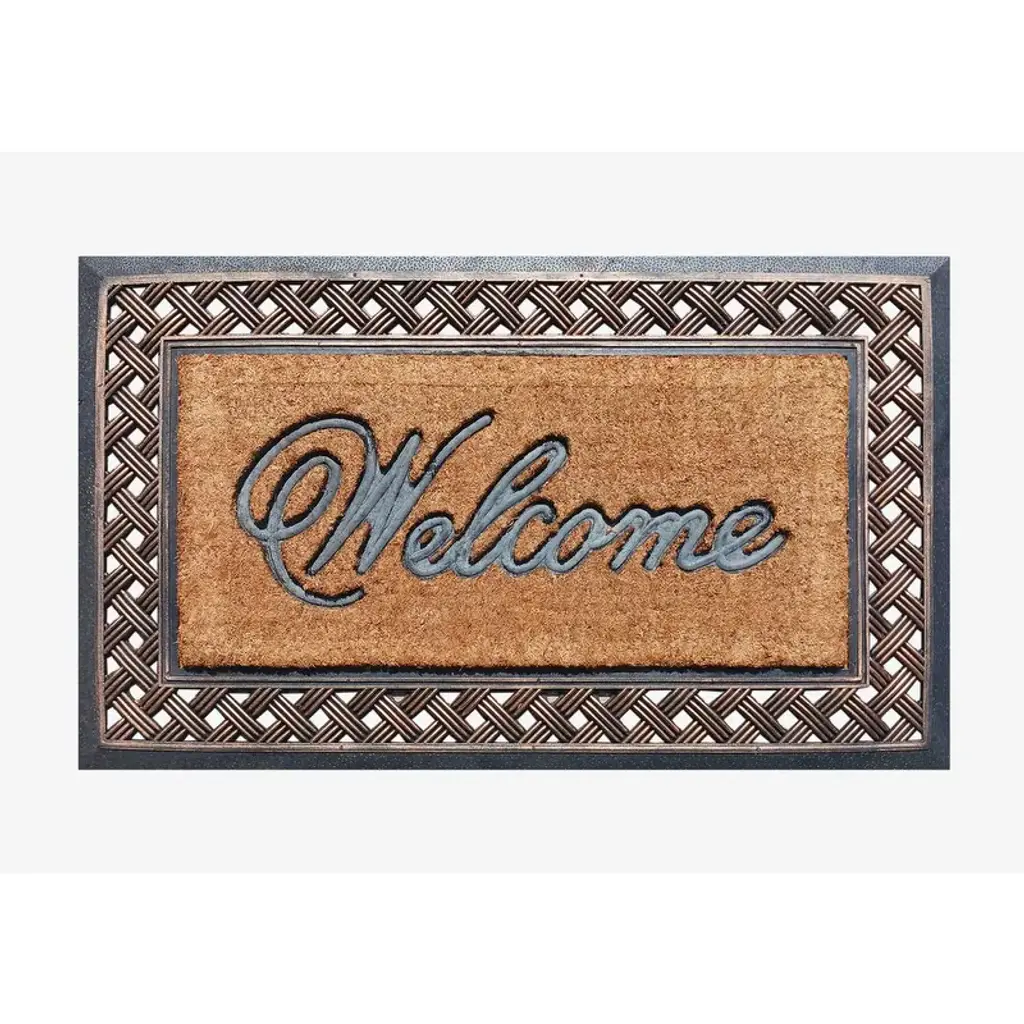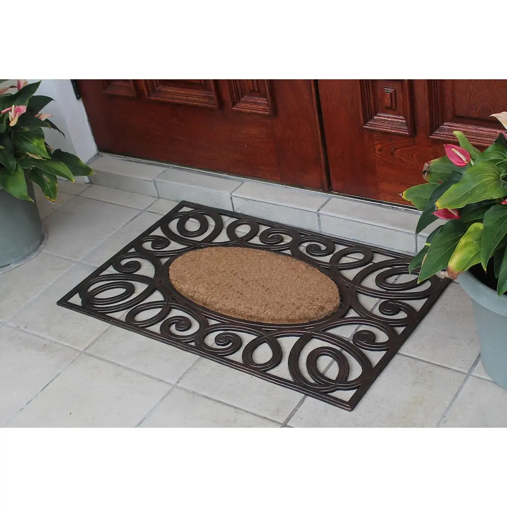 Keeps your floor clean when you decorate your entryway with this contemporary doormat, which includes a sturdy rubber backing to help in keep the rug in place & prevent slips. The attractive design of this rubber Doormat creates a welcoming entrance for your guests & the durable coir material holds up to lots of foot traffic. Recommended for outdoor use in covered areas. Vacuum or shake the mat regularly for longer life.