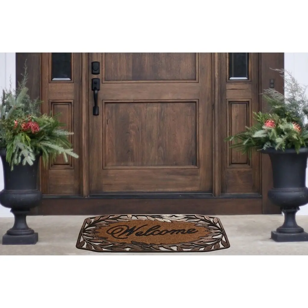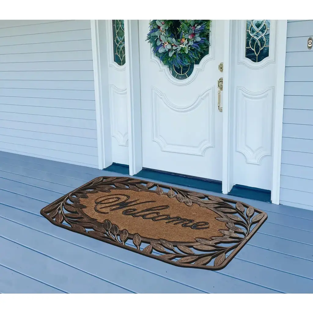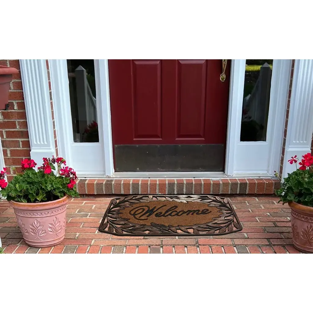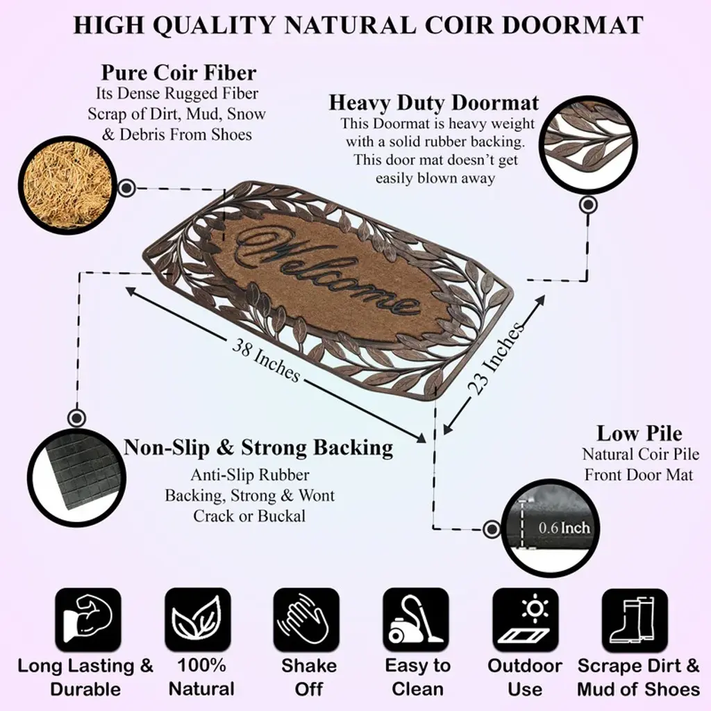 Keeps your floor clean when you decorate your entryway with this contemporary doormat, which includes a sturdy rubber backing to help in keep the rug in place & prevent slips. The attractive design of this rubber Doormat creates a welcoming entrance for your guests & the durable coir material holds up to lots of foot traffic. Recommended for outdoor use in covered areas. Vacuum or shake the mat regularly for longer life.
