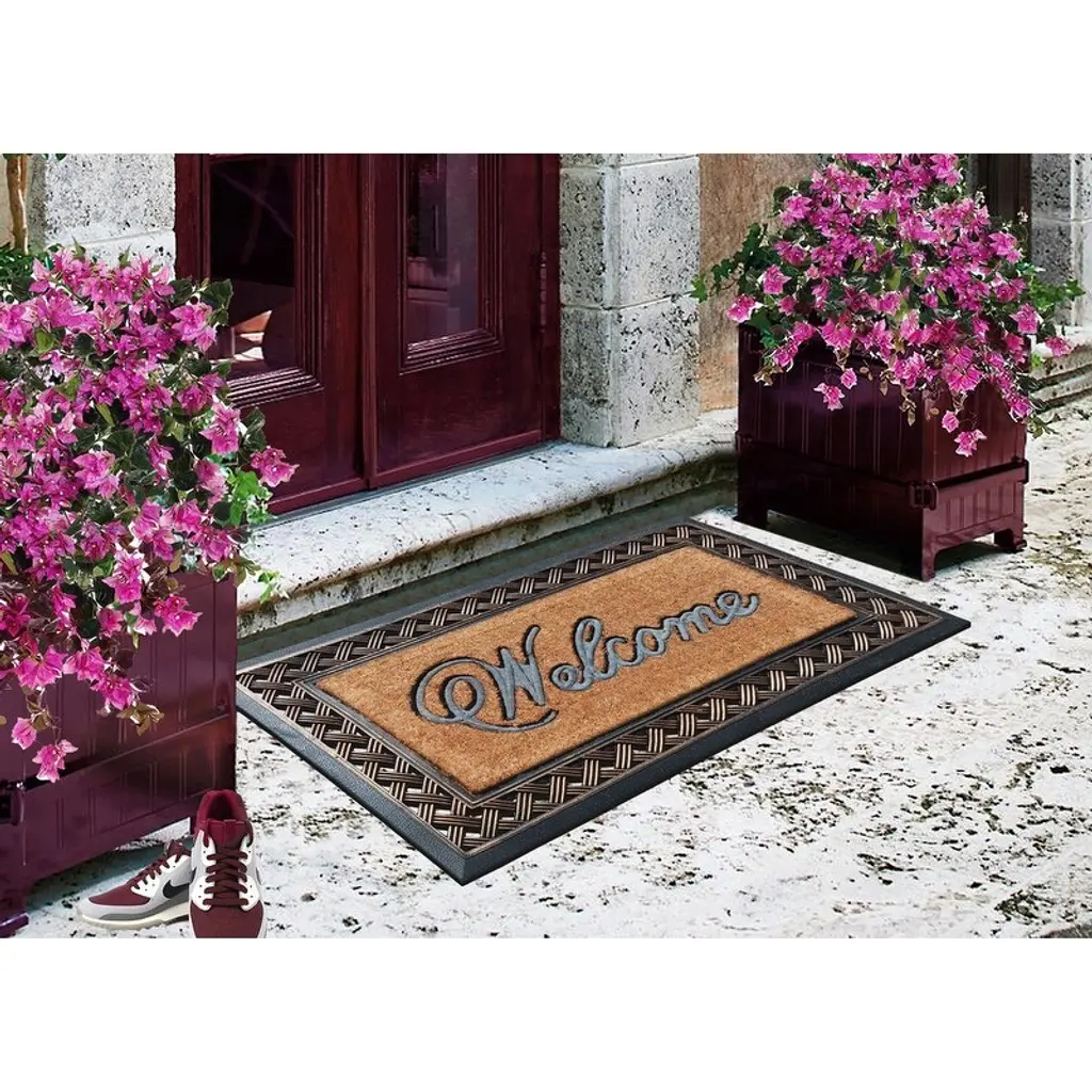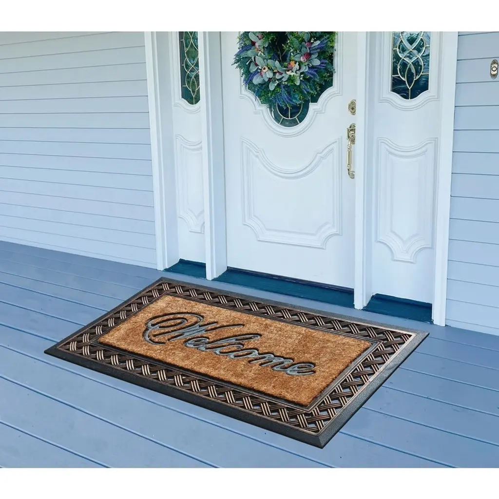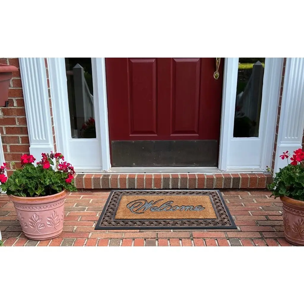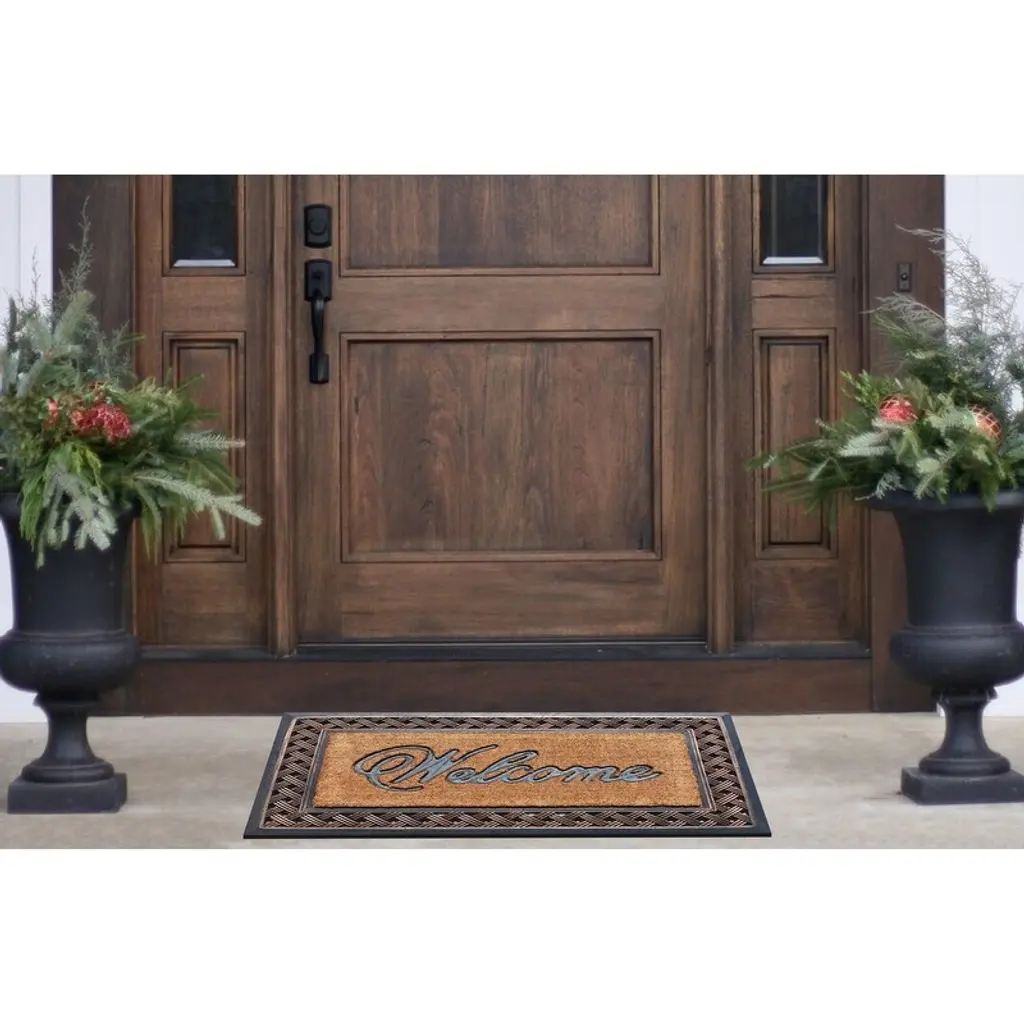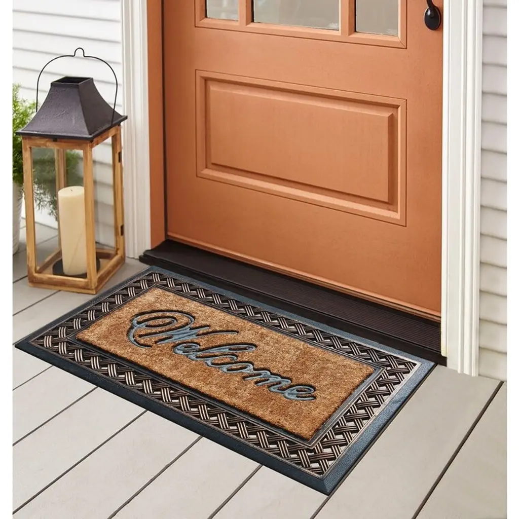 A1hc Natural Coir And Rubber Door Mat, Thick Durable Doormats For Indoor Outdoor Entrance - 23"x38" - Check Border