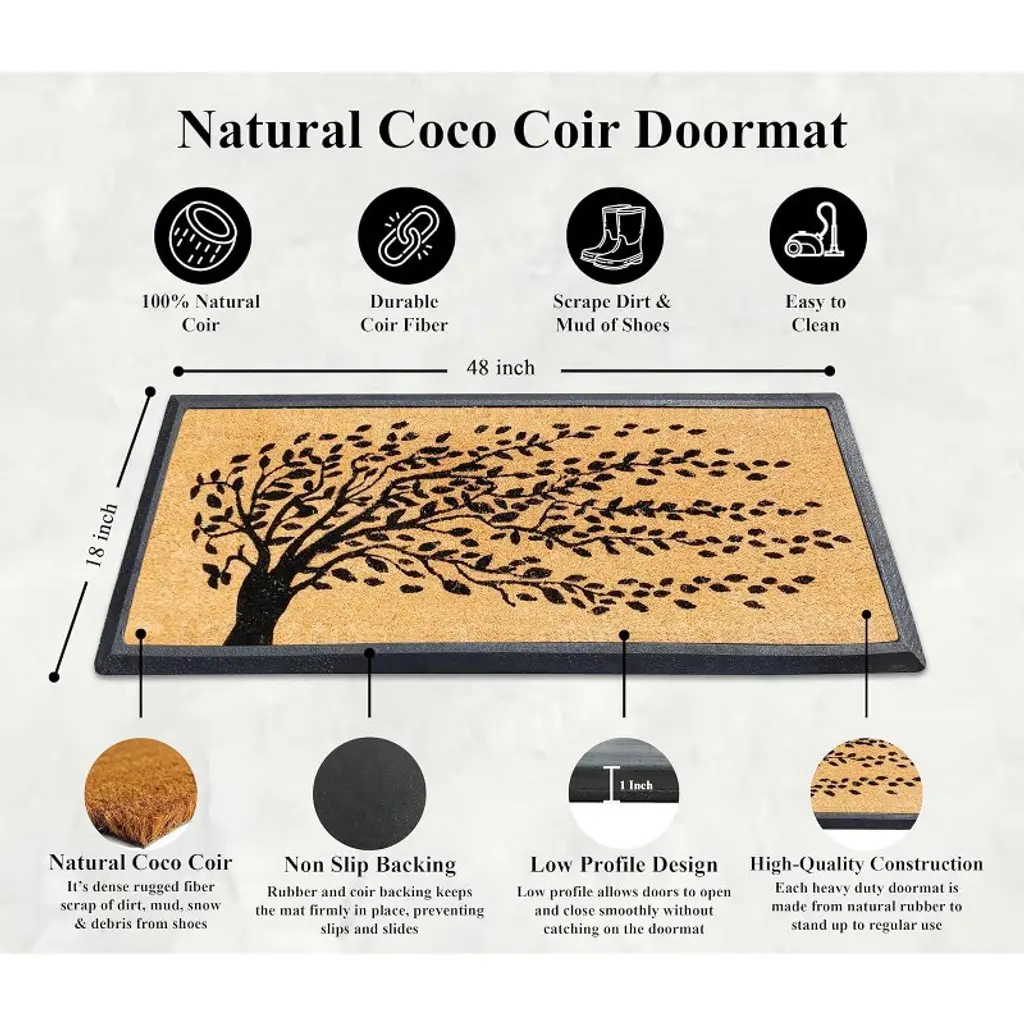 More than a decorative enhancement this rubber & coir molded doormat is made With a heavy rubber backing that anchors it in place while you brush dirt & debris from shoes & boots. The tufted coco-fiber facilitates scrubbing soles clean. Keeps your floor clean when you decorate your entryway with this beautiful doormat, which includes a sturdy rubber backing to help in keep the mat in place & prevent slips. The attractive design of this Coir Door Mat creates a welcoming entrance for your guests & the durable coir material holds up to lots of foot traffic. This Welcome Mat Recommended for outdoor use in covered areas. Vacuum or shake the mat regularly for longer life.