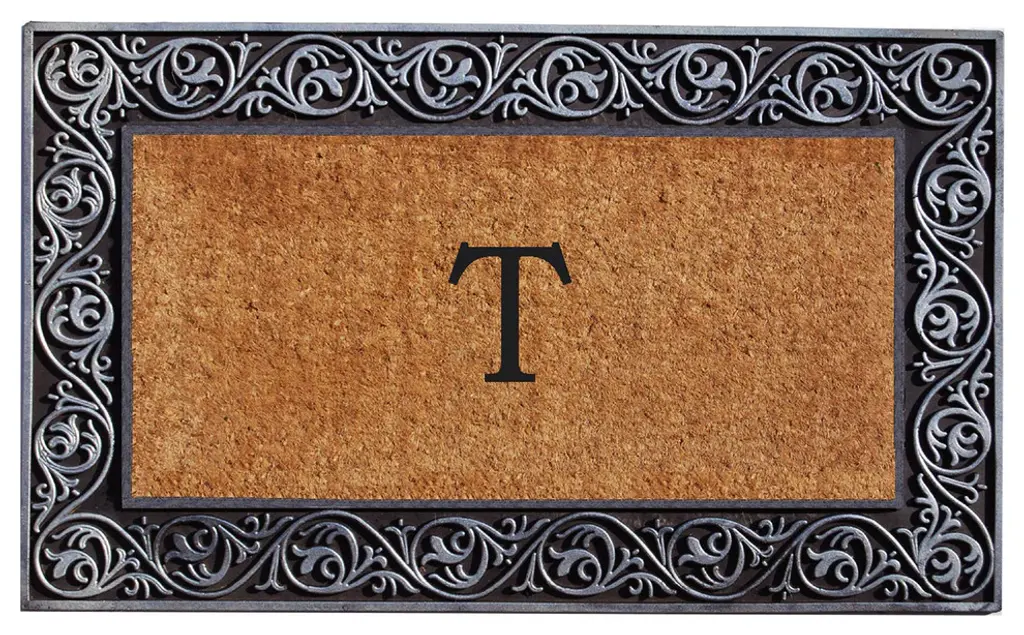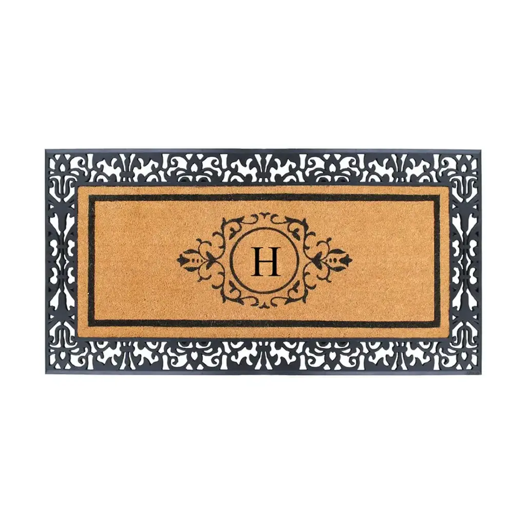 More than a mere decorative enhancement, this rubber and coir molded, monogrammed doormat is made with a heavy rubber backing that anchors it firmly to the ground as you brush off your shoes. Its tufted coco-fiber pile facilitates scrubbing soles clean with ease.