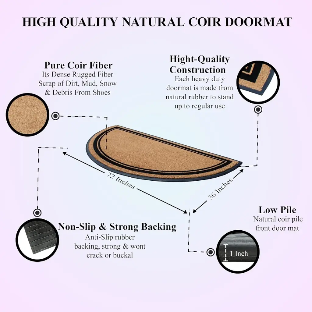A1hc Natural Coir & Rubber Half Round Entrance Door Mat 36" X 72",heavy Duty Thick Durable Doormats