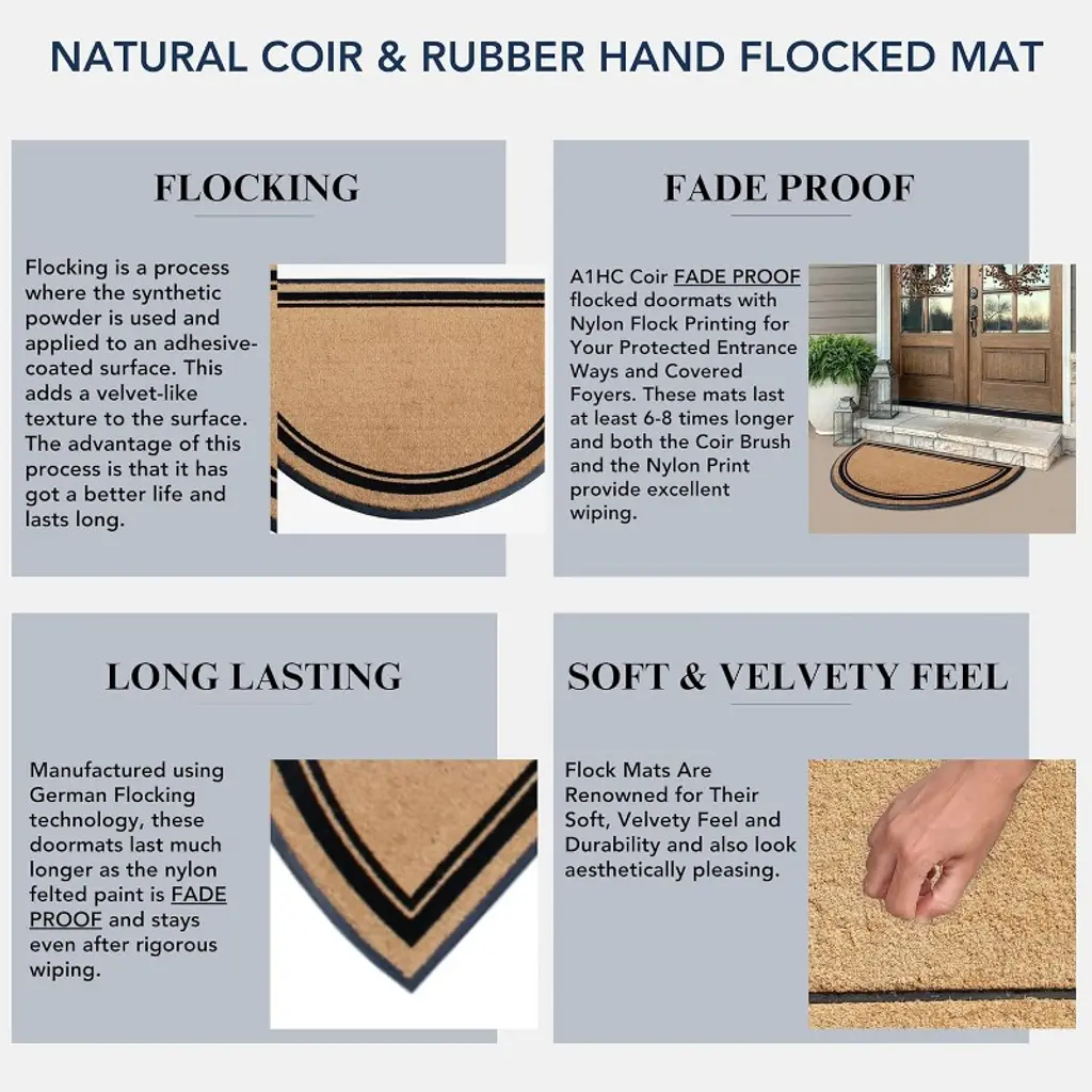 More than a decorative enhancement this rubber & coir doormat is made with a heavy rubber backing that anchors it in place while you brush dirt & debris from shoes & boots. The tufted coco-fiber facilitates scrubbing soles clean. Keeps your floor clean when you decorate your entryway with this beautiful doormat, which includes a sturdy rubber backing to help in keep the mat in place & prevent slips. The attractive design of this Coir door mats outside creates a welcoming entrance for your guests & the durable coir material holds up to lots of foot traffic. This Welcome Mat Recommended for outdoor use in covered areas. Vacuum or shake the mat regularly for longer life.