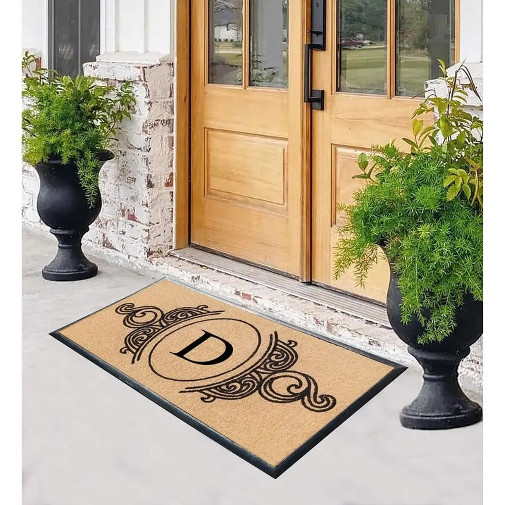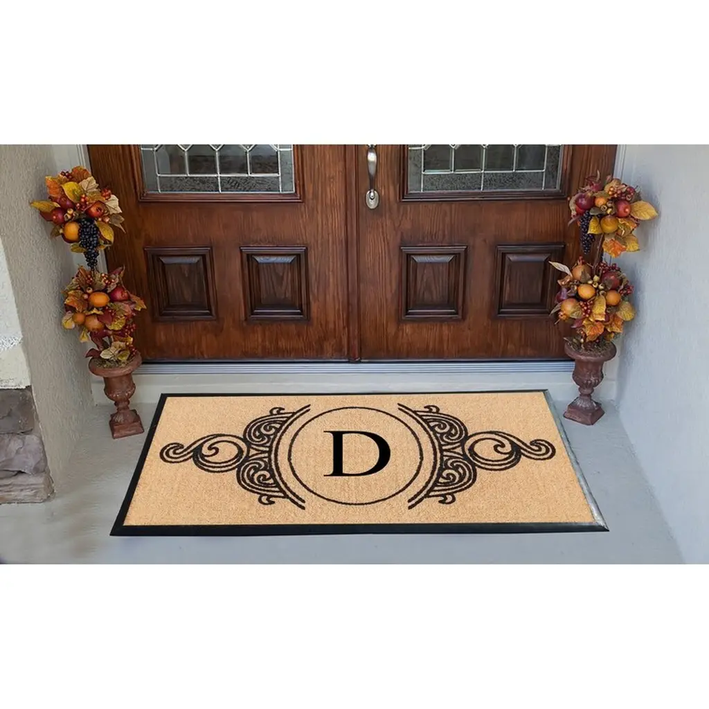A1hc Natural Coir & Rubber Hand Flocked Large Monogrammed Doormat 30x60 Inch - D