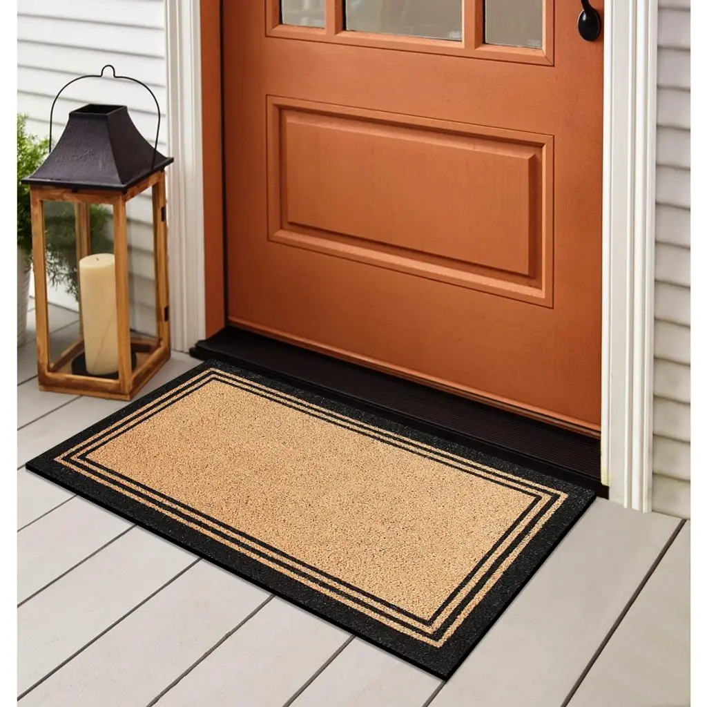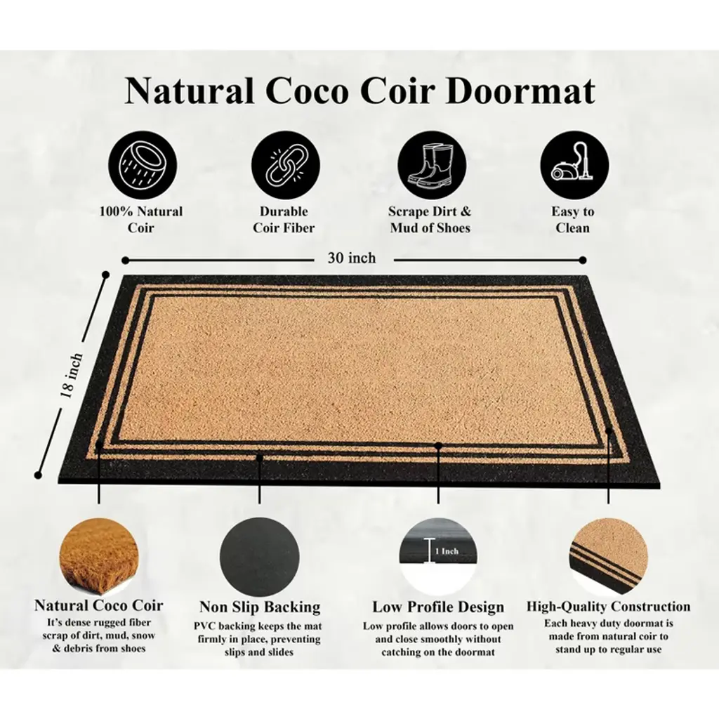 A1hc Natural Coir Doormat With Classic Border Heavy Duty Pvc Backing Front Door Entry Mat 18" X 30"