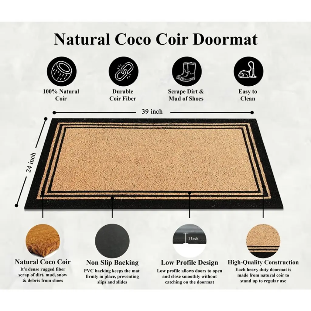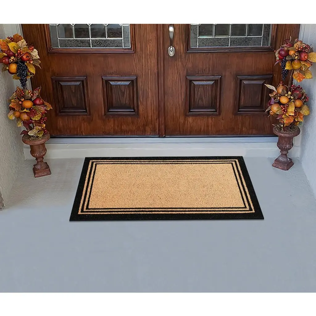 A1hc Natural Coir Doormat With Classic Border Heavy Duty Pvc Backing Front Door Entry Mat 24" X 39"