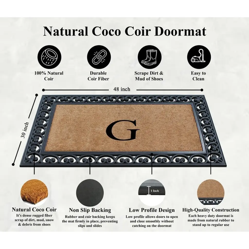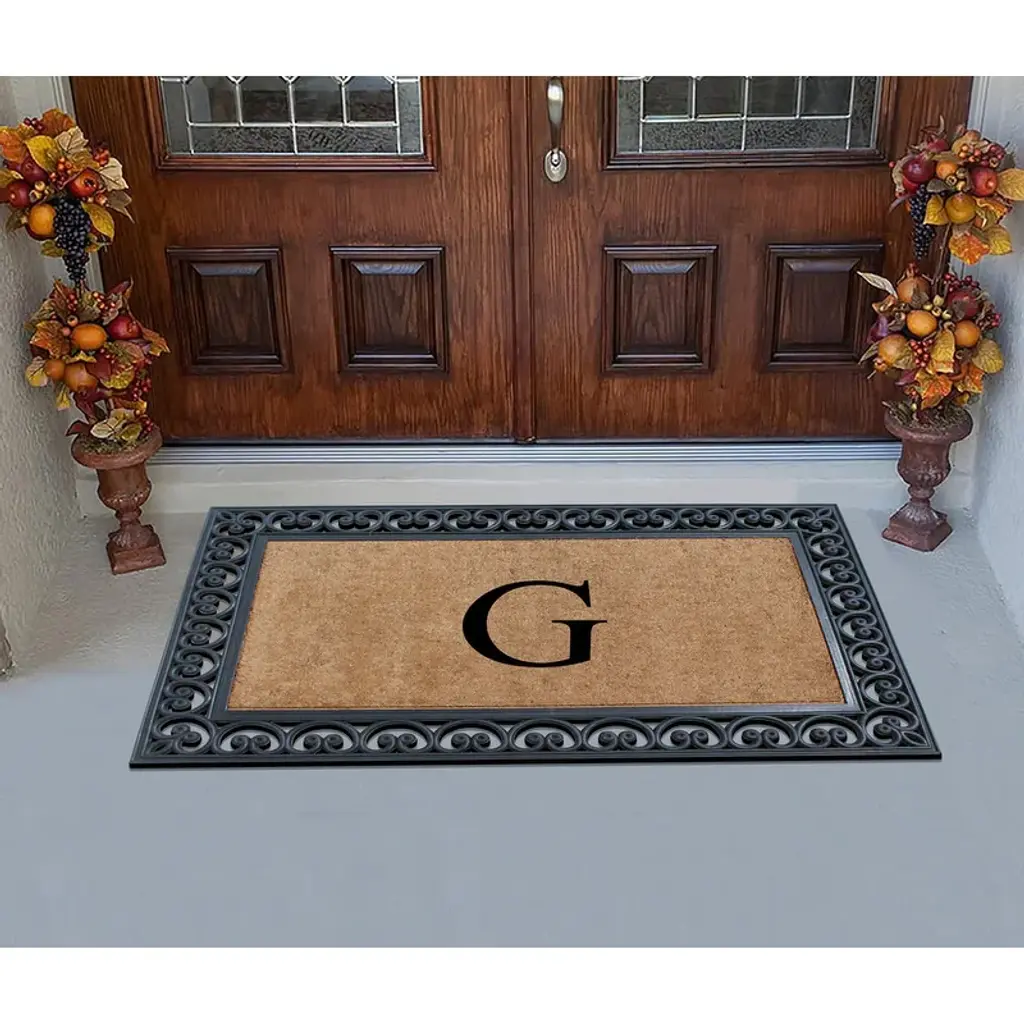 A1hc Natural Rubber And Coir Monogrammed Front Porch Entry Doormat 30"x48" - G