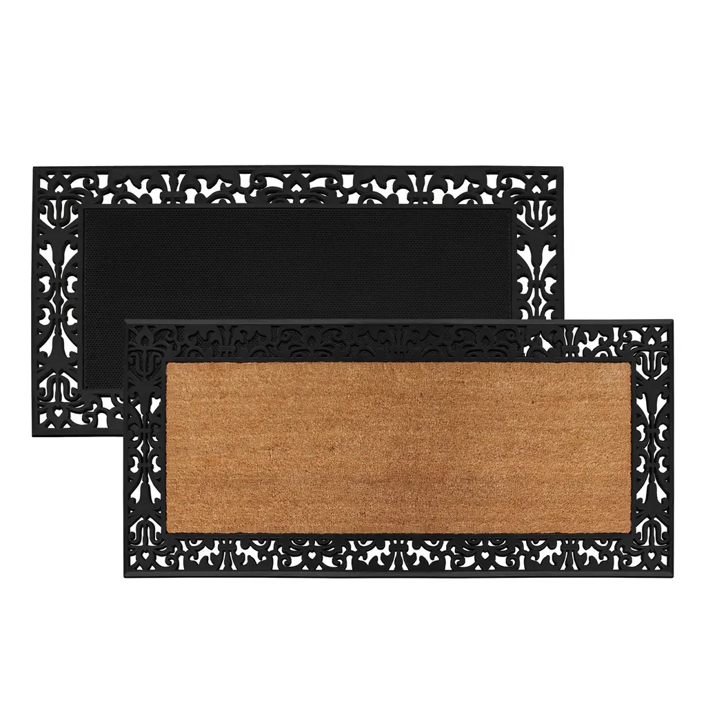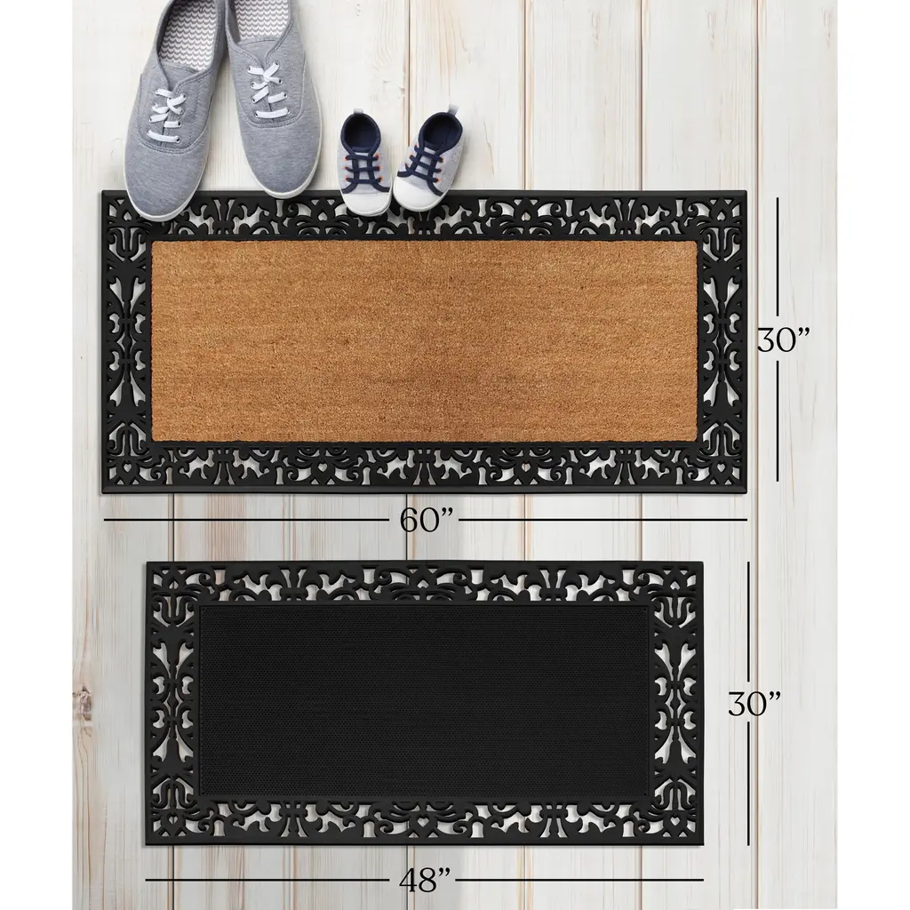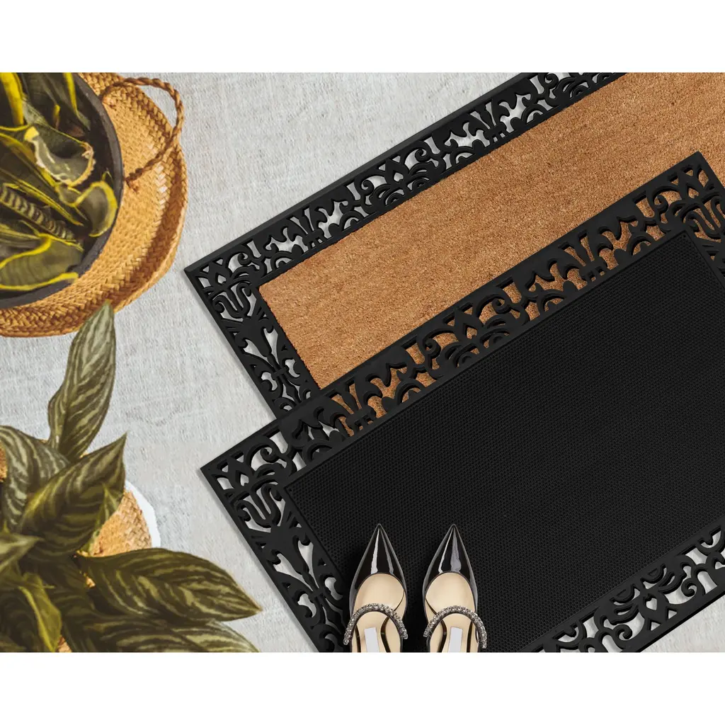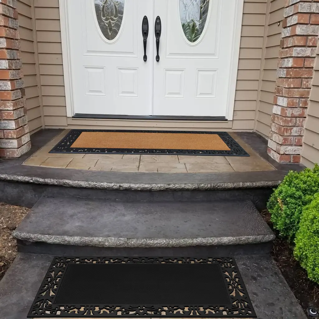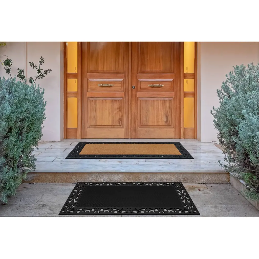 A1hc Paisley Border Heavy Duty Large Size Doormat, Double Door Doormat 2 Pack(30”x48” & 30”x60”) - Black/beige