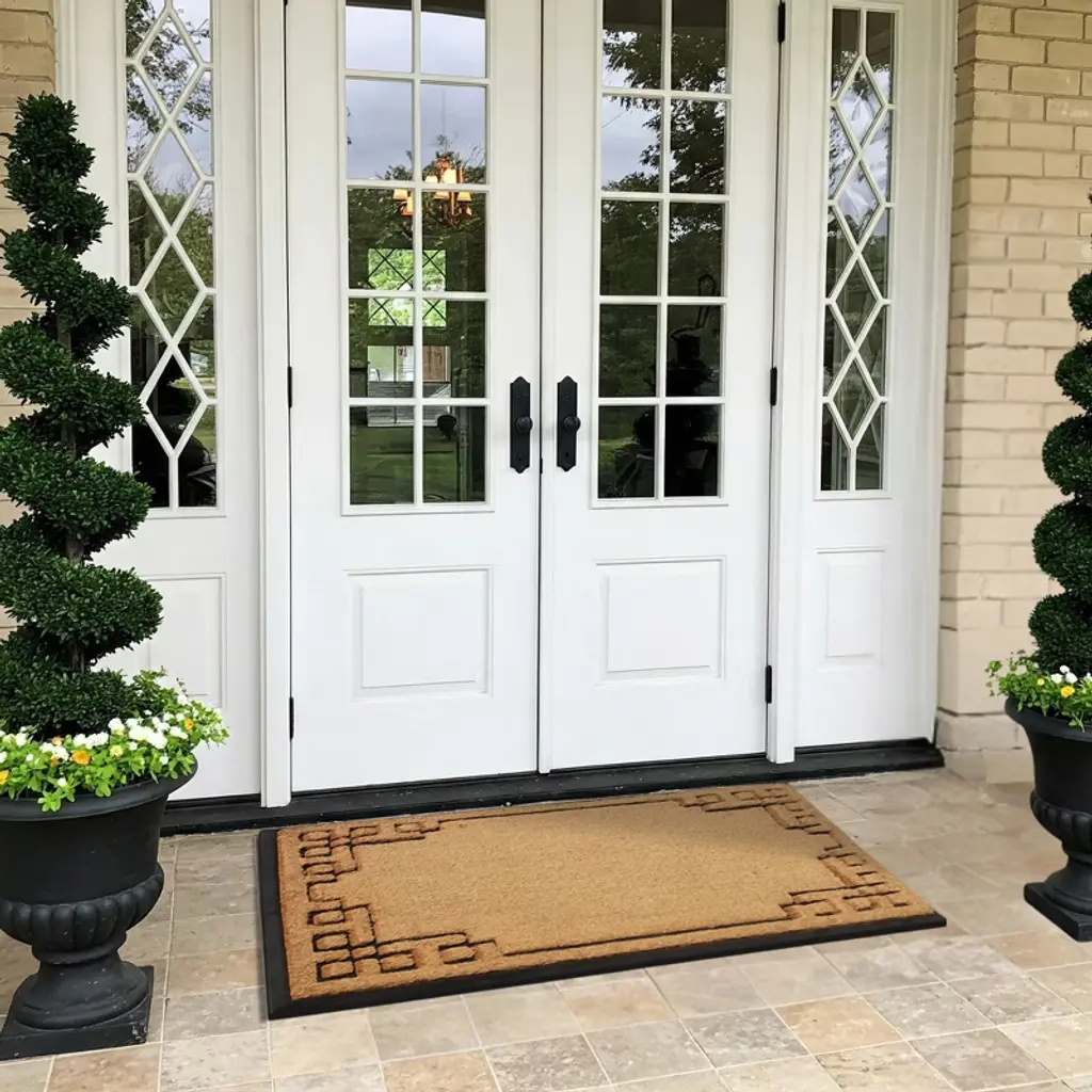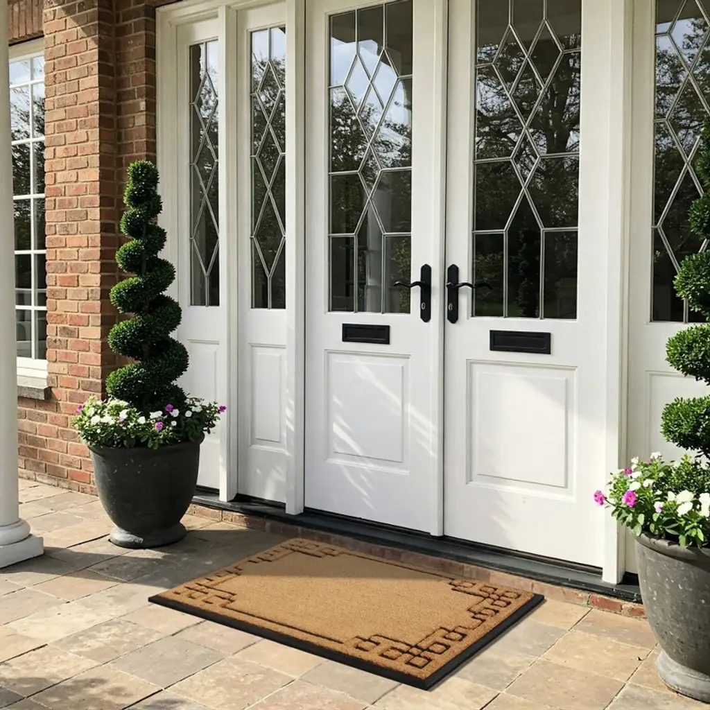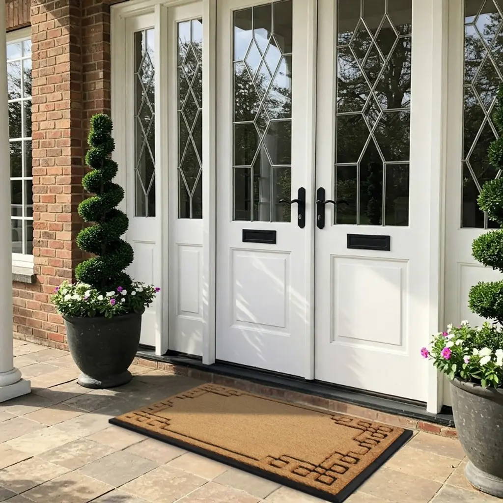 A1hc Plain Bordered Designed Natural Coir & Rubber Door Mat, Heavy Duty, Non-slip Large Doormats, 24"x39"
