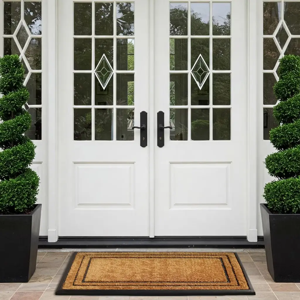 More than just a decorative enhancement, this rubber & coir doormat features a heavy rubber backing that keeps it securely in place while you scrub dirt and debris from shoes and boots. The tufted coco-fiber effectively cleans soles, while the sturdy rubber backing helps prevent slips and keeps the mat anchored. The attractive design creates a welcoming entrance for guests, and the durable coir material is built to withstand heavy foot traffic. This doormat is recommended for outdoor use in covered areas. For longer life, vacuum or shake the mat regularly.