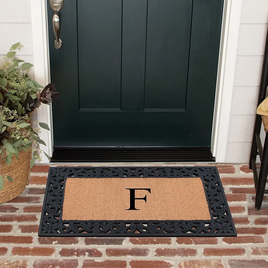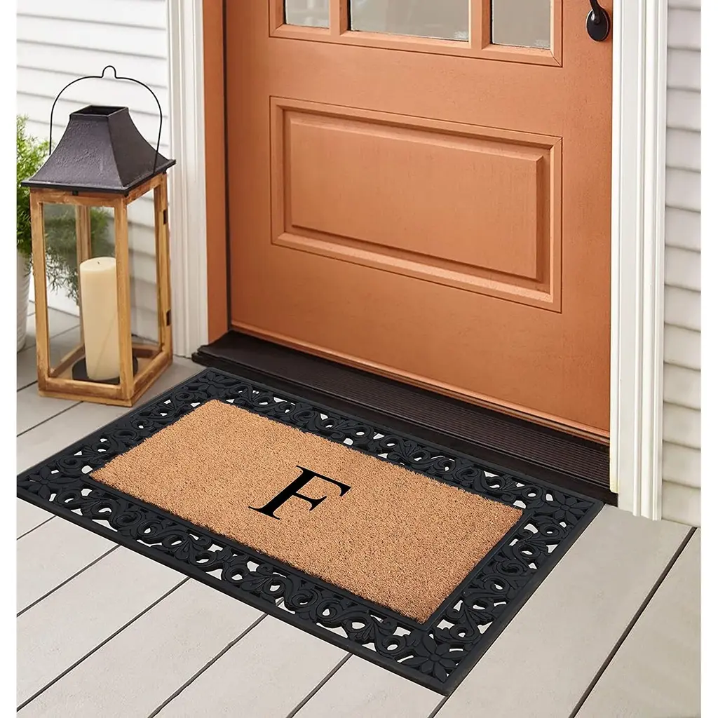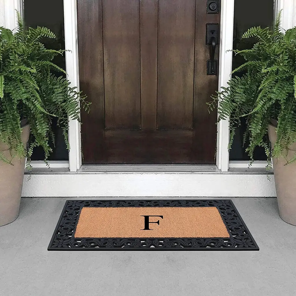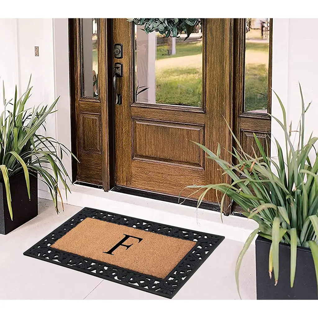 A1hc Rubber And Coir Floral Pattern Outdoor Entrance Durable Monogrammed Doormat 18"x30", Black - F