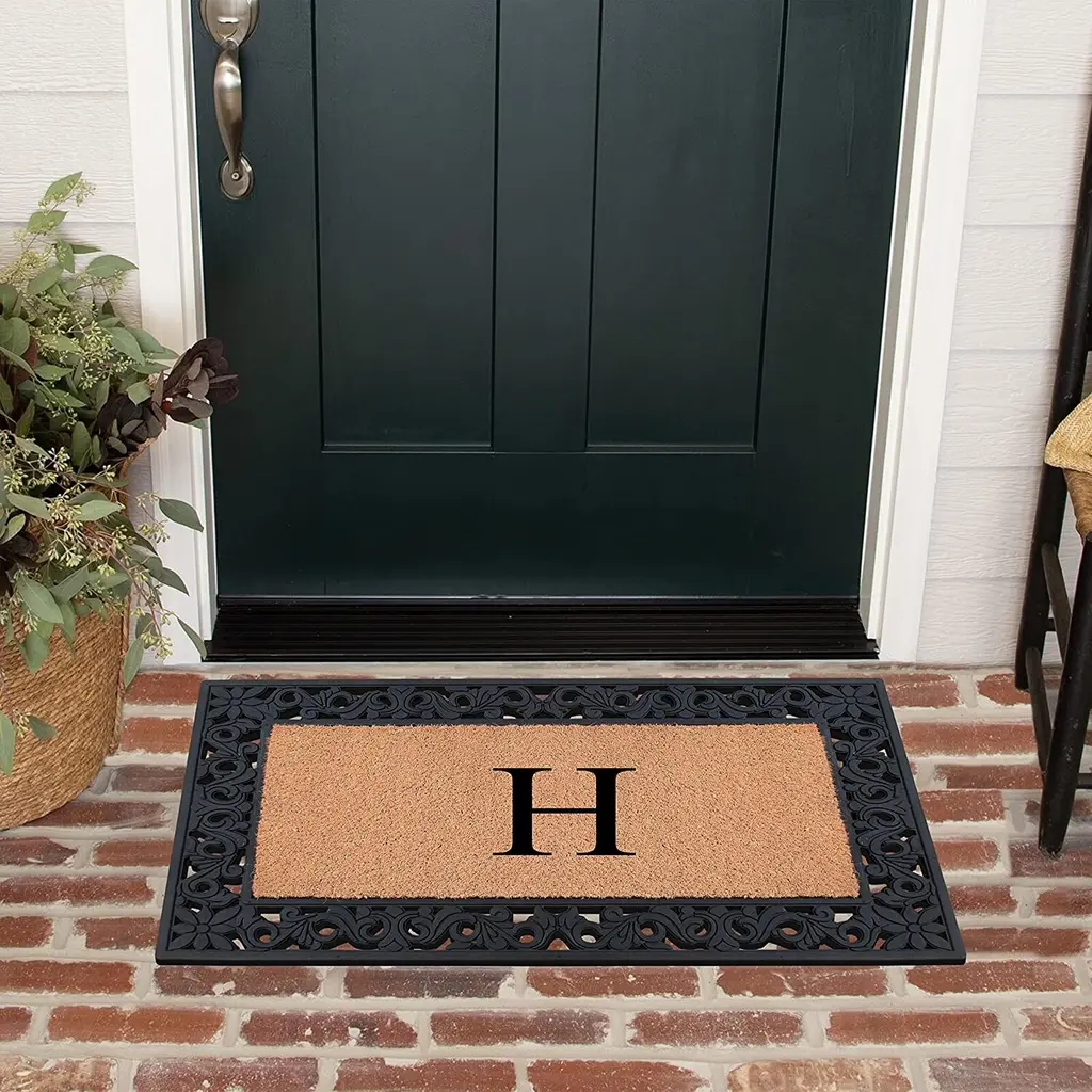 A1hc Rubber And Coir Floral Pattern Outdoor Entrance Durable Monogrammed Doormat 18"x30", Black - H