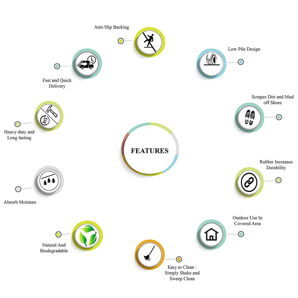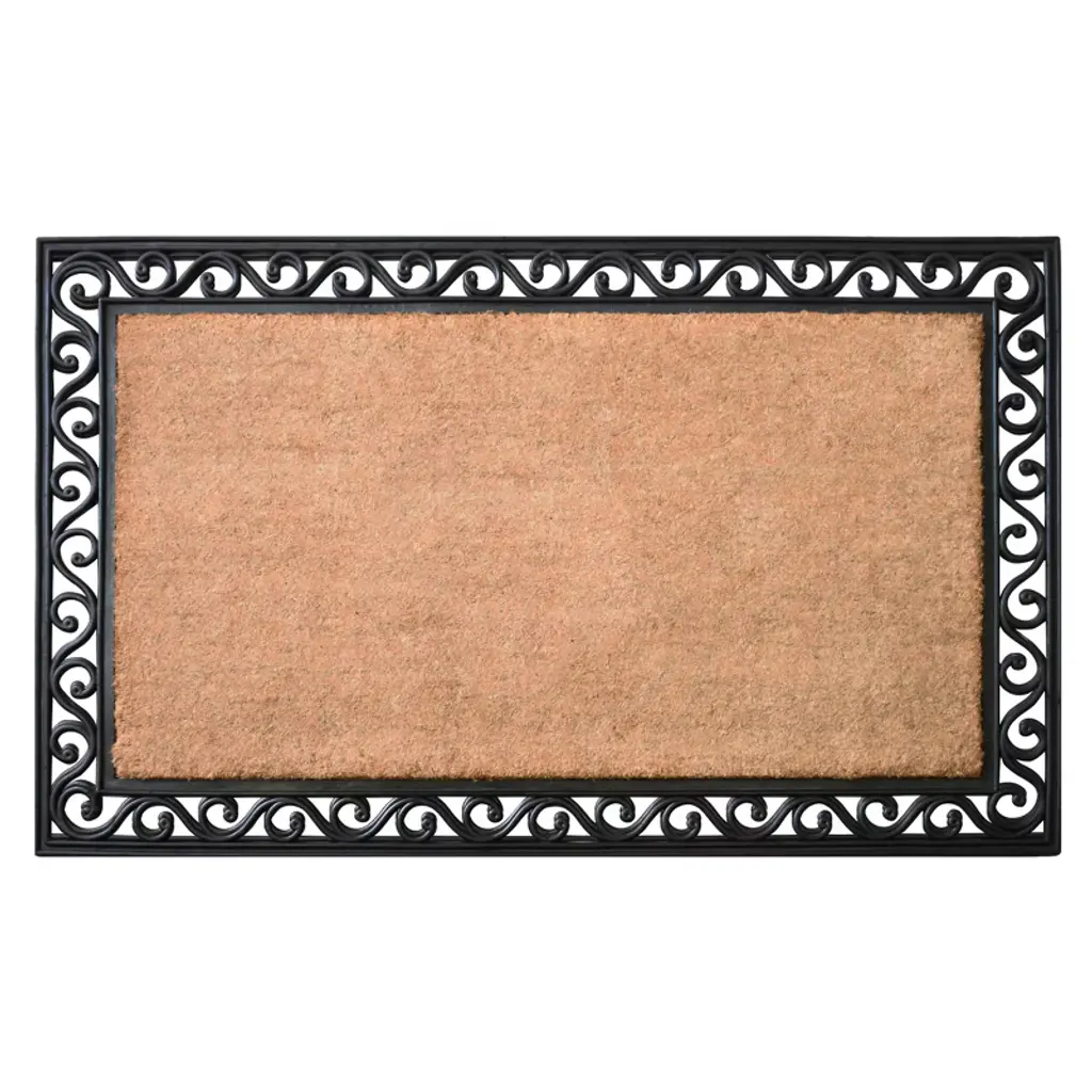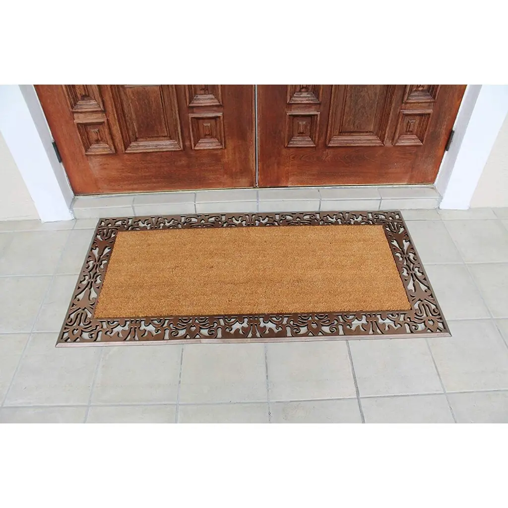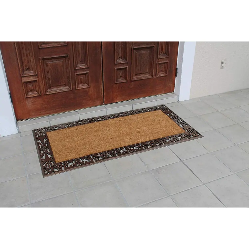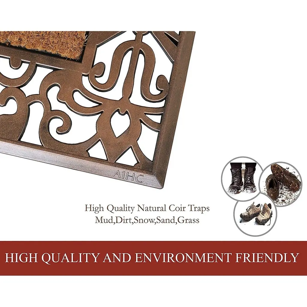More than a decorative enhancement this rubber and coir molded doormat is made with a heavy rubber backing that anchors it in place while you brush dirt and debris from shoes and boots. The tufted coco-fiber facilitates scrubbing soles clean.