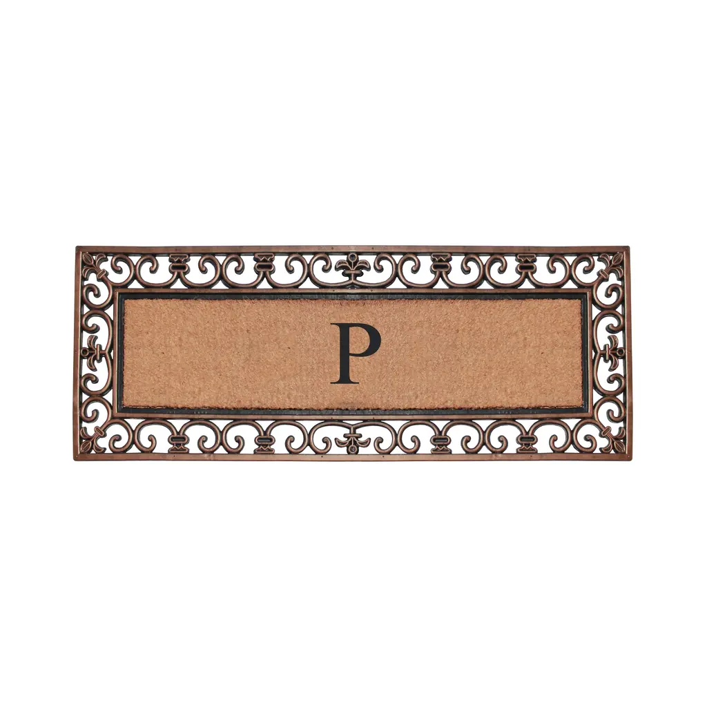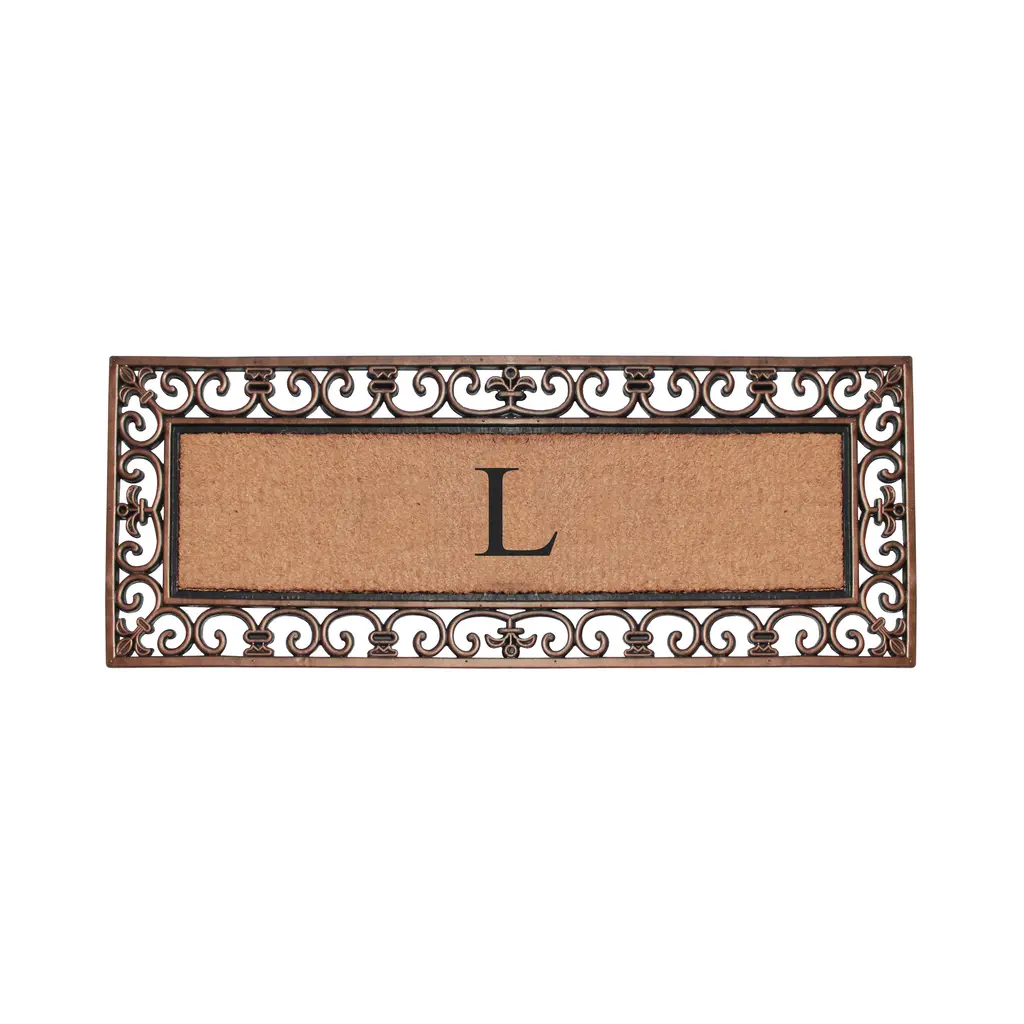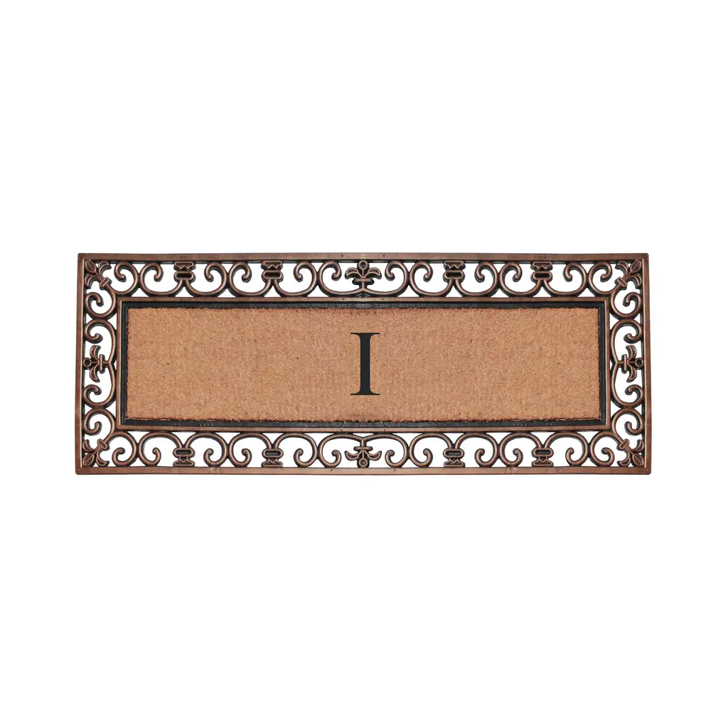 A1hc Rubber And Coir Paisley Border Myla Bronze Monogrammed Doormat, 18"x48" - F
