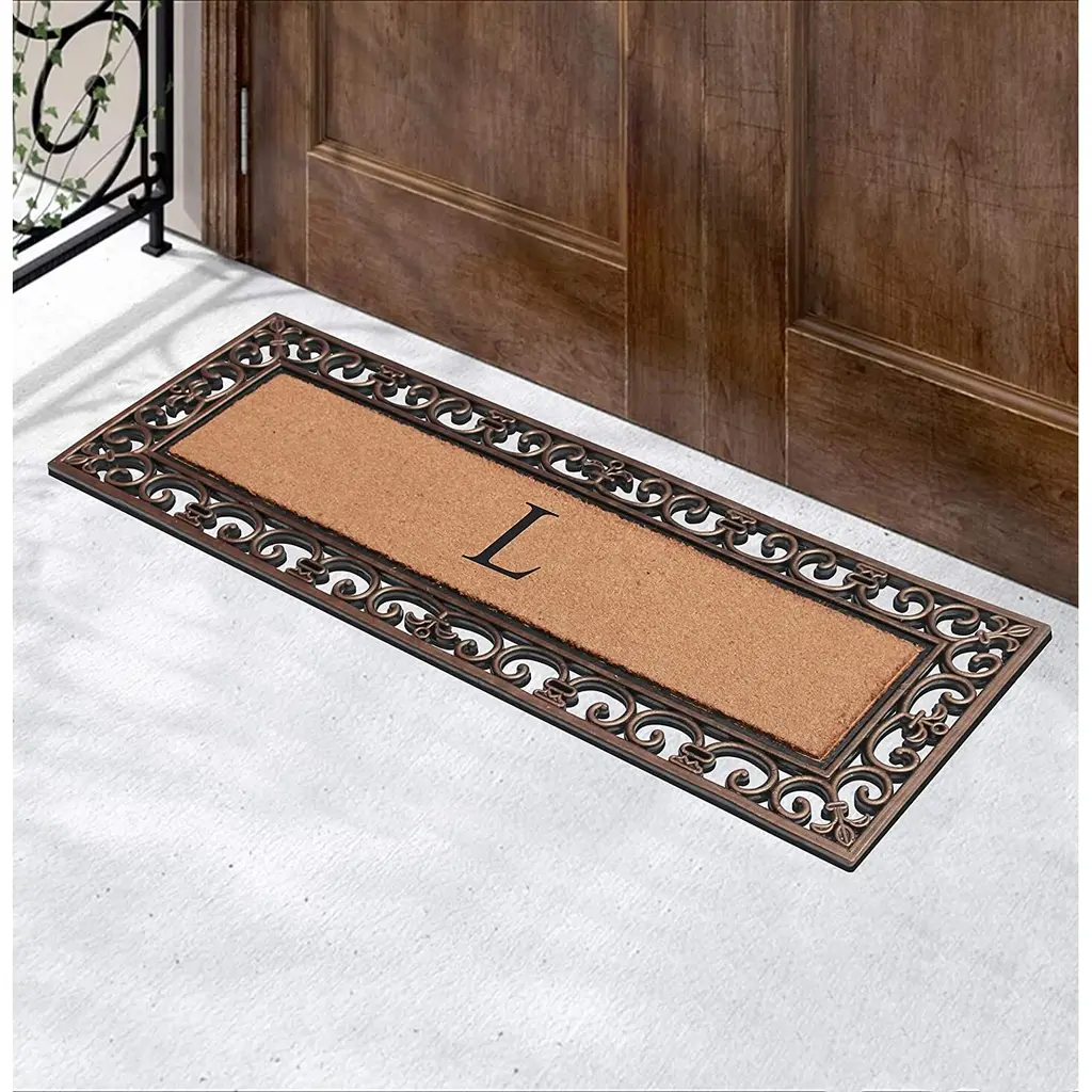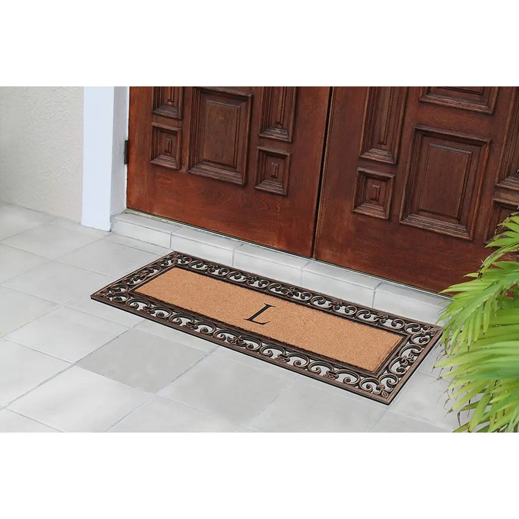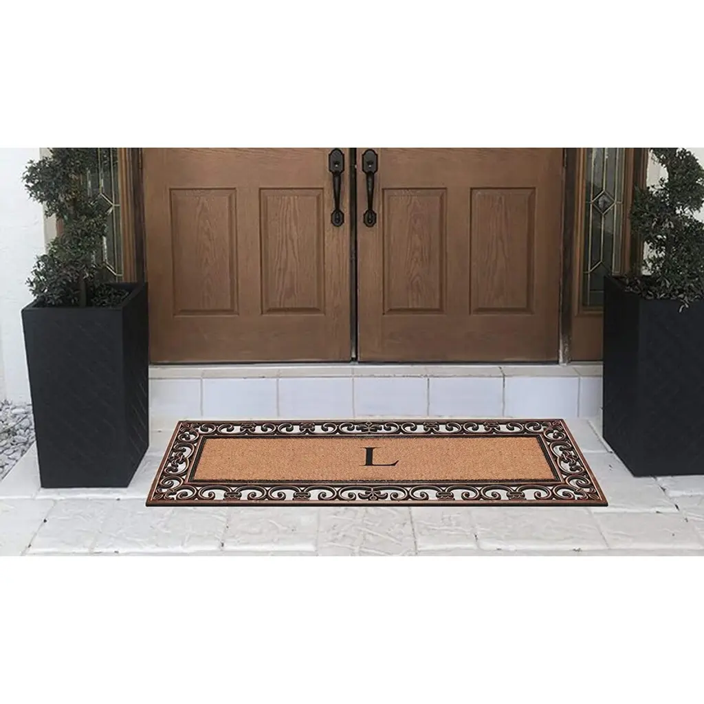 A1hc Rubber And Coir Paisley Border Myla Bronze Monogrammed Doormat, 18"x48" - F