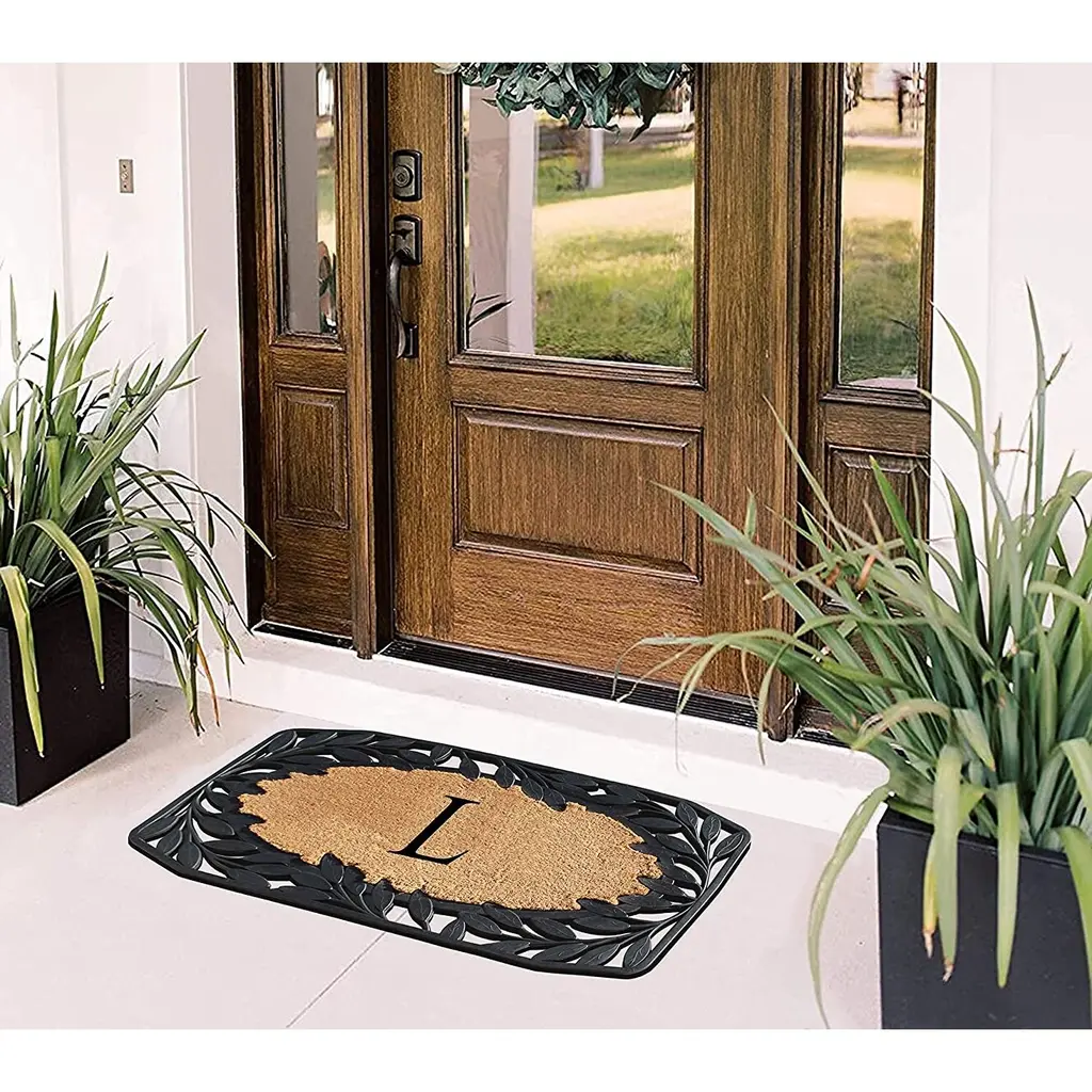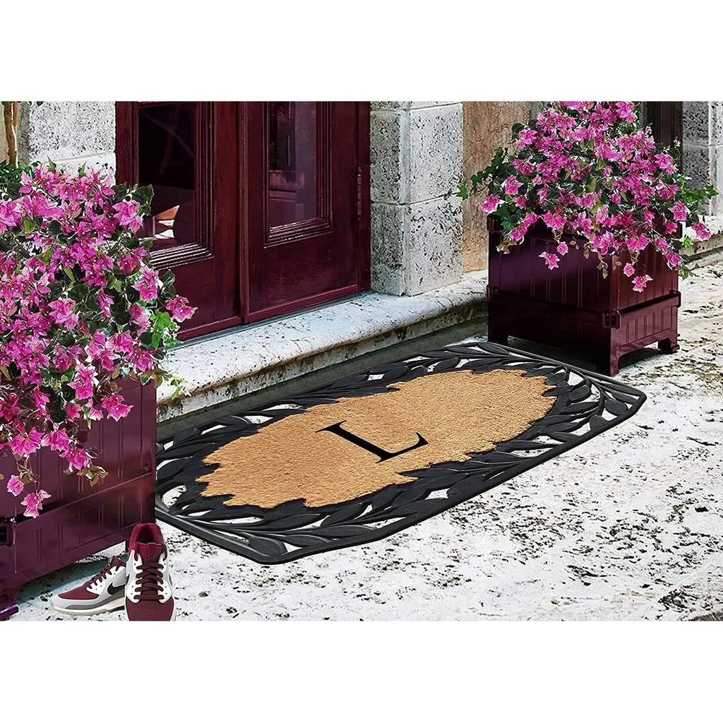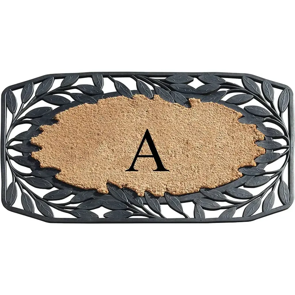 A1hc Rubber And Coir Stylish Leaf Border Large Outdoor Durable Monogrammed Doormat, Black - 23" X 38" - A