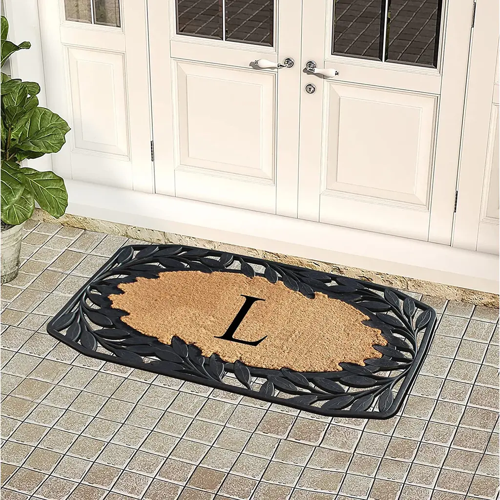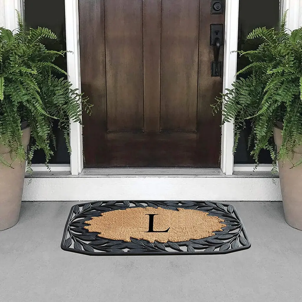 A1hc Rubber And Coir Stylish Leaf Border Large Outdoor Durable Monogrammed Doormat, Black - 23" X 38" - D
