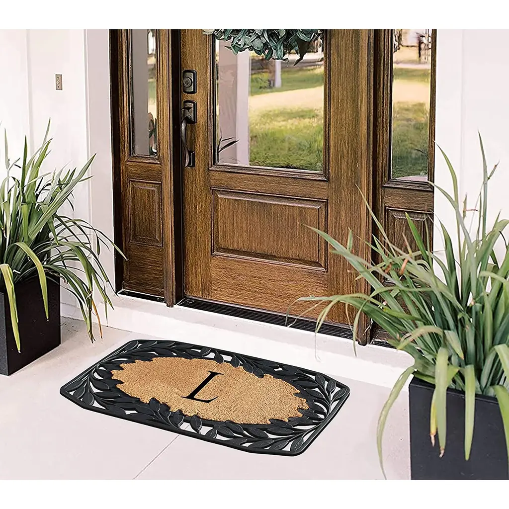 A1hc Rubber And Coir Stylish Leaf Border Large Outdoor Durable Monogrammed Doormat, Black - 23" X 38" - G