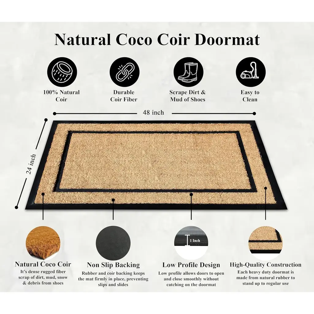 More than a decorative enhancement this rubber & coir molded doormat is made With a heavy rubber backing that anchors it in place while you brush dirt & debris from shoes & boots. The tufted coco-fiber facilitates scrubbing soles clean. Keeps your floor clean when you decorate your entryway with this beautiful doormat, which includes a sturdy rubber backing to help in keep the mat in place & prevent slips. The attractive design of this Coir Door Mat creates a welcoming entrance for your guests & the durable coir material holds up to lots of foot traffic. This Welcome Mat Recommended for outdoor use in covered areas. Vacuum or shake the mat regularly for longer life.