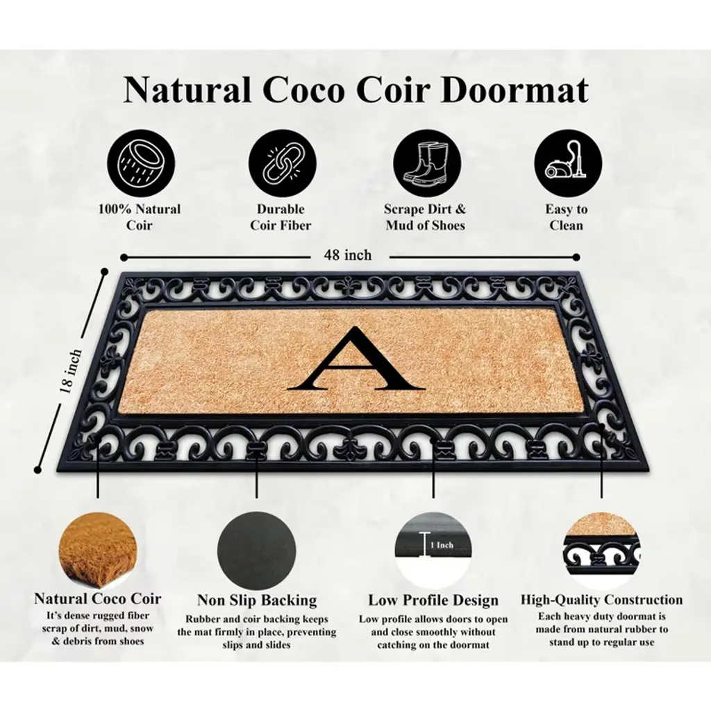 A1hc Rubber Coir Doormat For Outdoor Entrance, Anti-shed Treated Front Door Mat 18x48, Monogrammed D