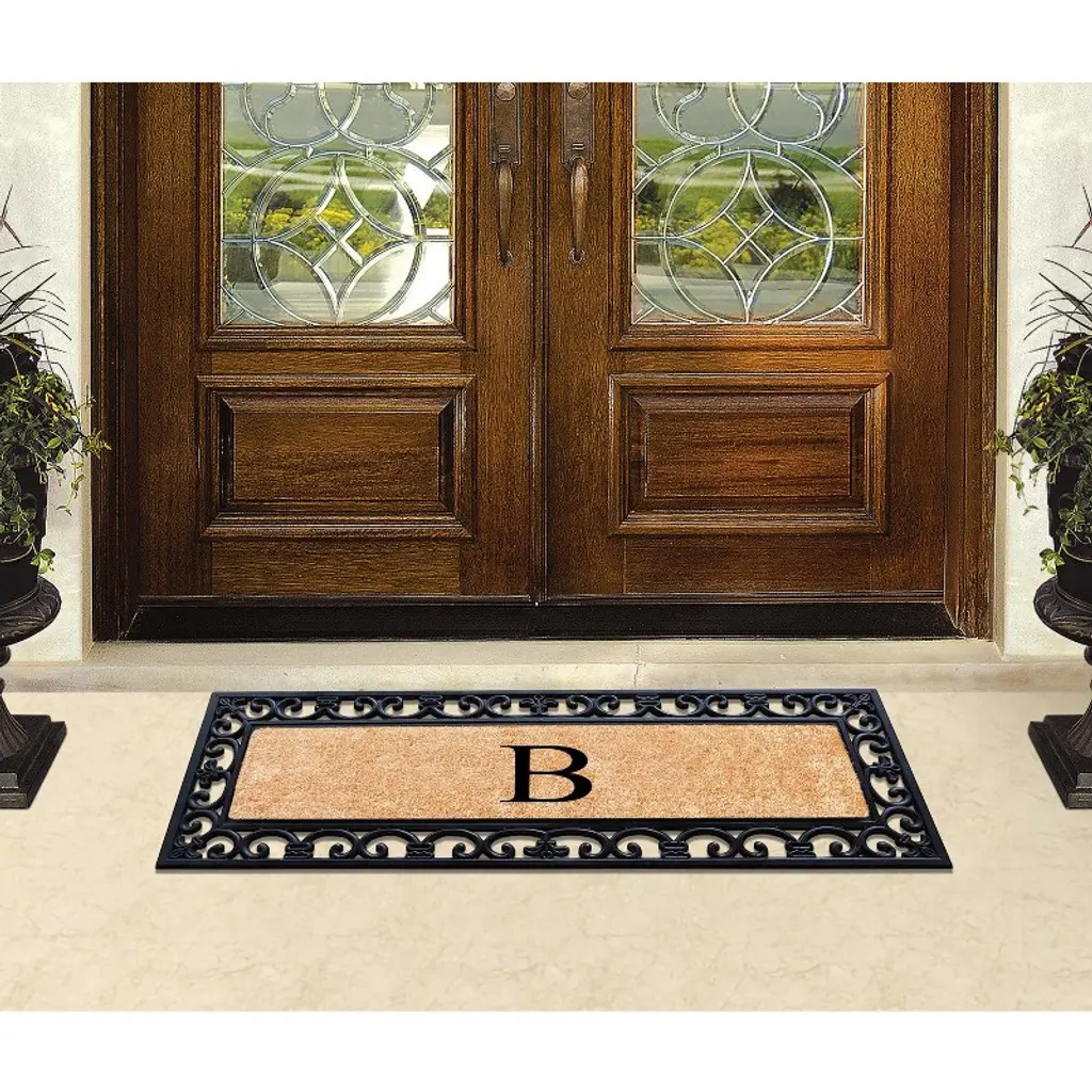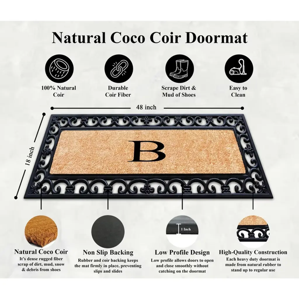 A1hc Rubber Coir Doormat For Outdoor Entrance, Anti-shed Treated Front Door Mat 18x48, Monogrammed E