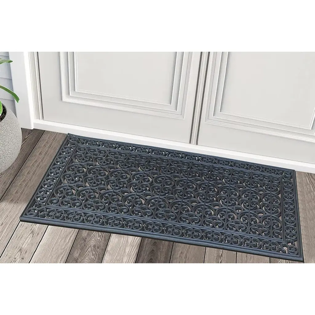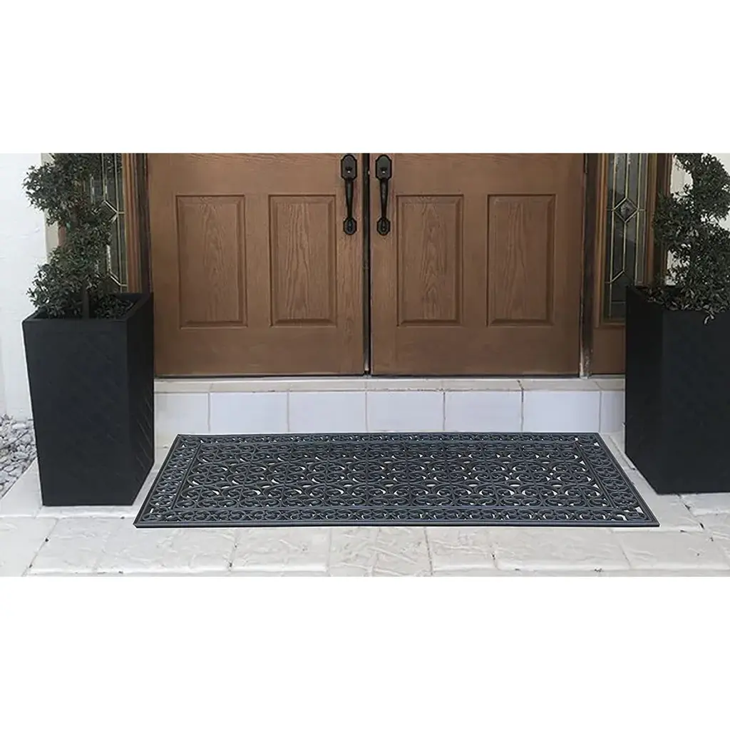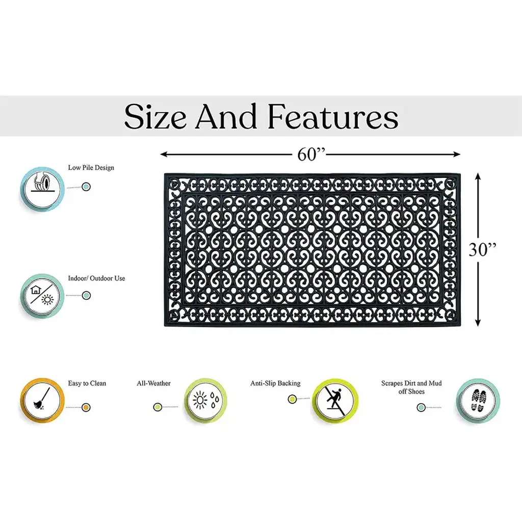 A1hc Rubber Paisley Non Slip Heavy Duty Front Door Extra Large Doormat 30" X 60" - Black