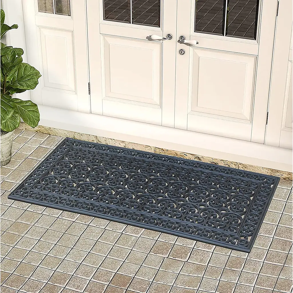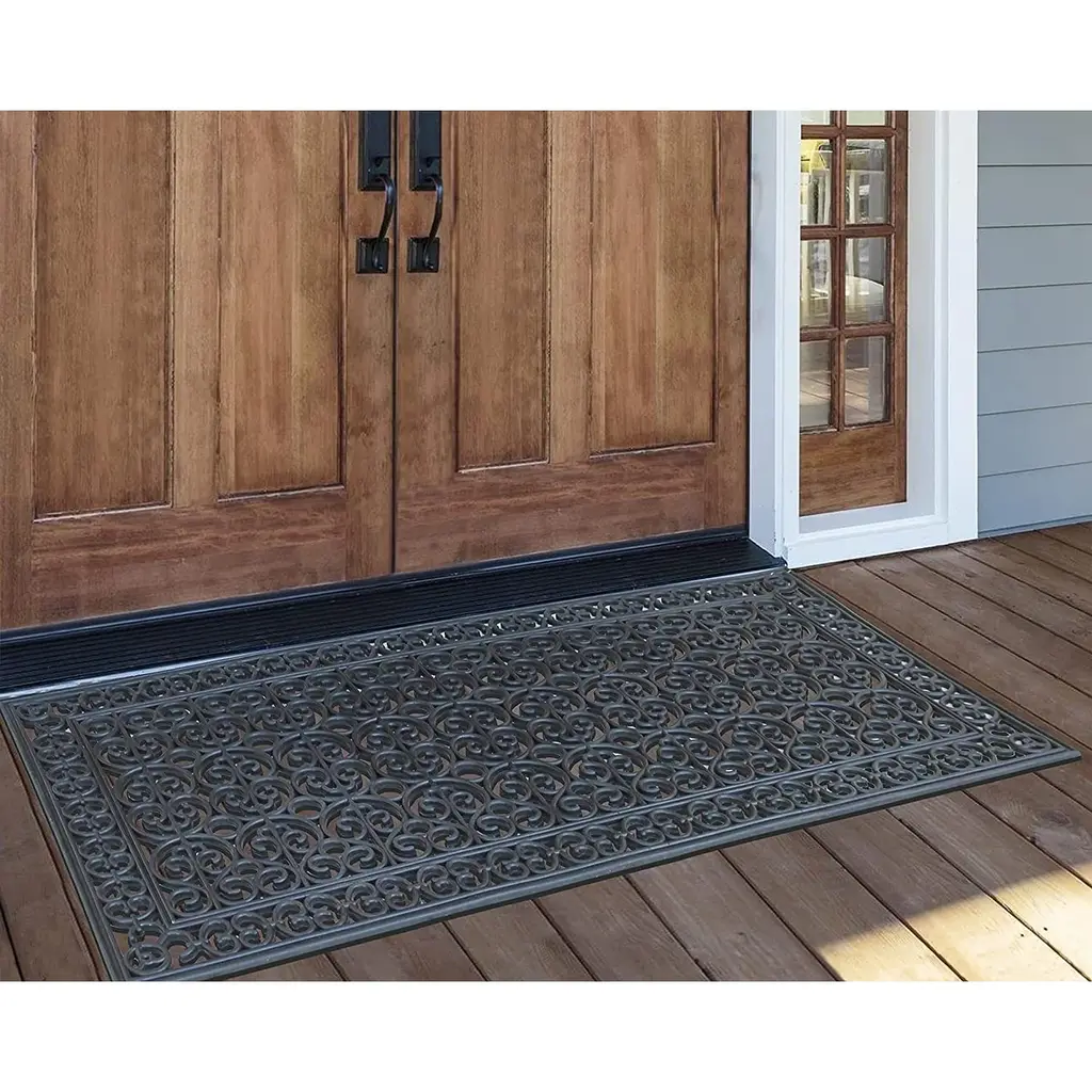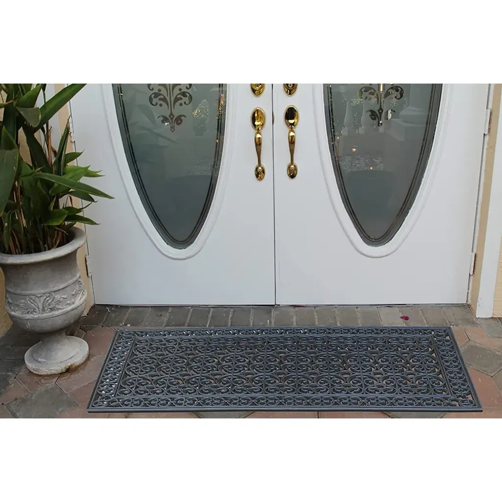 A1hc Rubber Paisley Non Slip Heavy Duty Front Door Extra Large Doormat 30" X 60" - Black