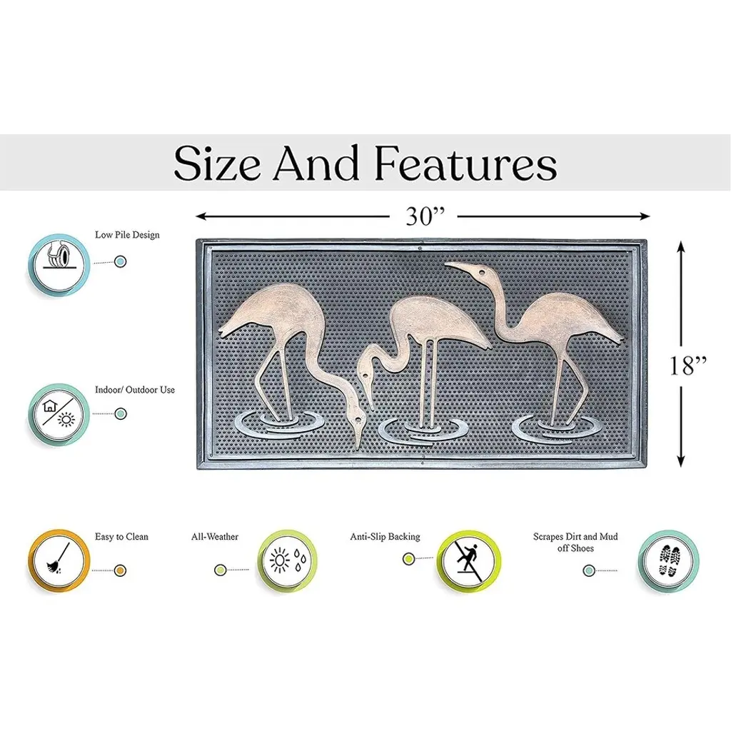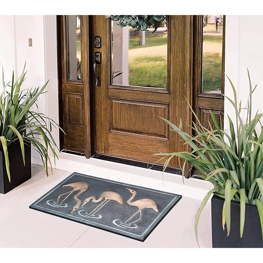 A1hc Rubber Pin Mat, Beautifully Copper Hand Finished Doormat, 18"x30" - Flamingo