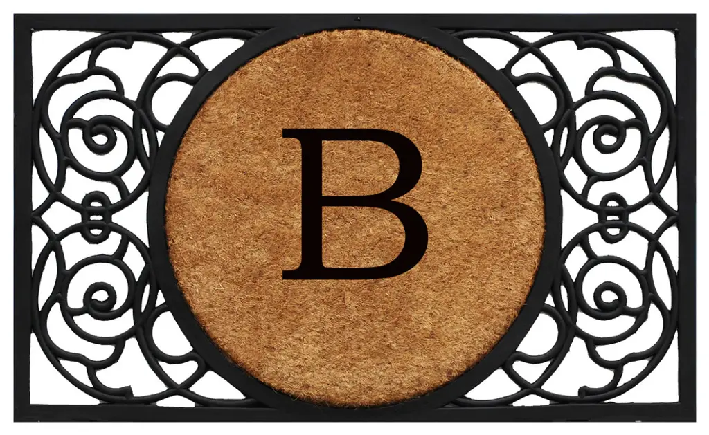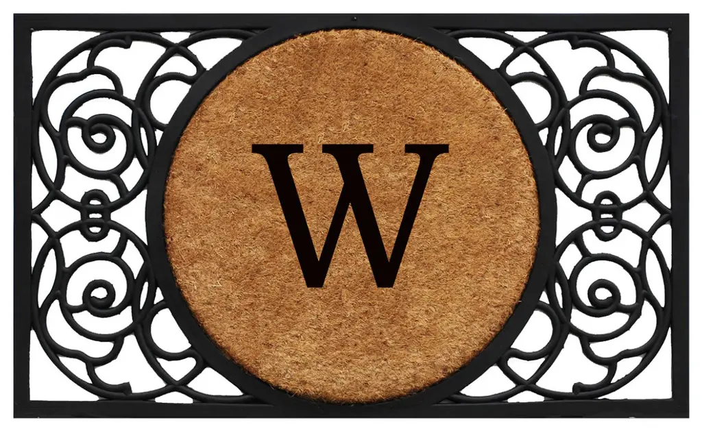 The beautiful combination of coir and rubber in this monogrammed doormat makes a dramatic reception for your guests. While the heavy-duty rubber adds weight and elegance, the coir acts as a natural scraper on shoes to keep debris from entering your home. Vacuum, sweep or lightly hose clean and allow to dry.