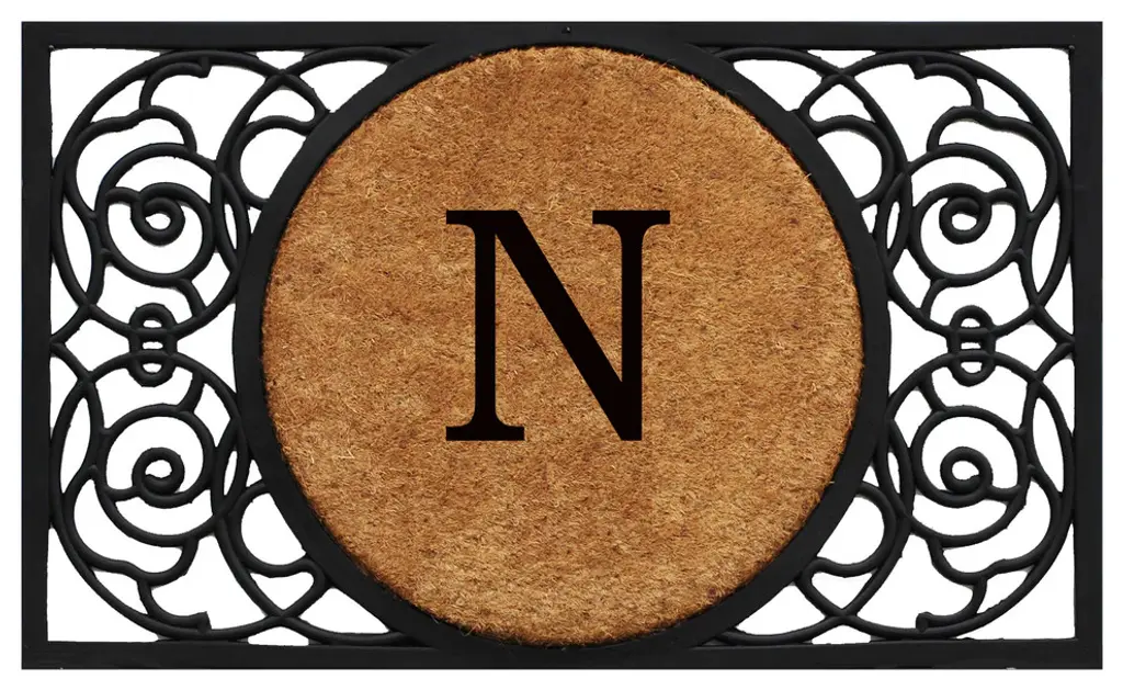 Durable, yet warm and inviting, this monogrammed doormat is a functional addition to any home decor. Made of heavy-duty rubber and natural coir that scrapes shoes clean and absorbs moisture, this larger size also provides more coverage. Vacuum, sweep or lightly hose clean and allow to dry.