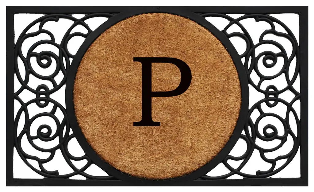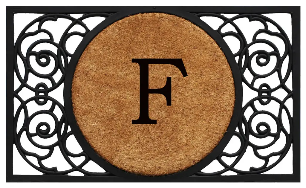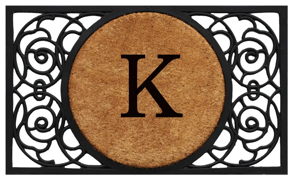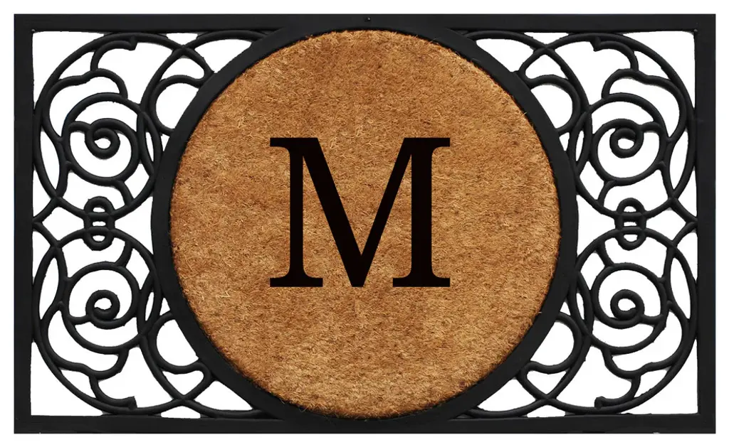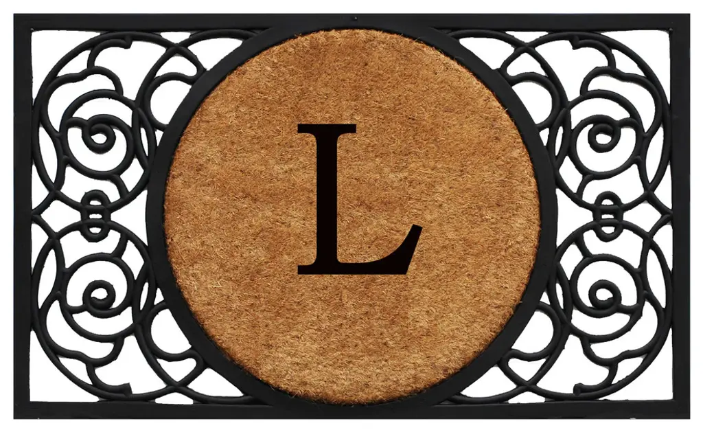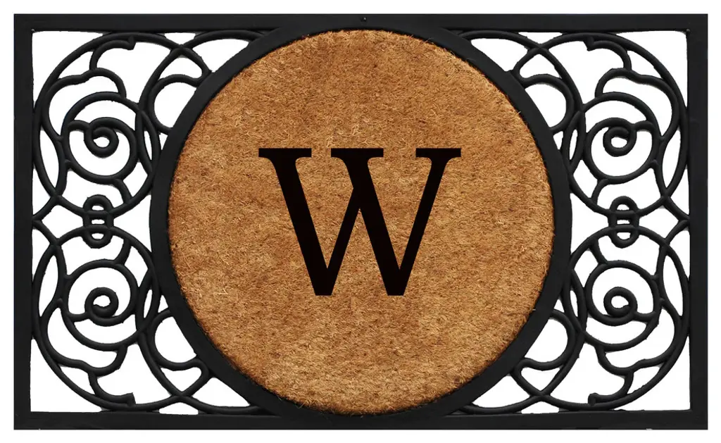 Durable, yet warm and inviting, this monogrammed doormat is a functional addition to any home decor. Made of heavy-duty rubber and natural coir that scrapes shoes clean and absorbs moisture, this larger size also provides more coverage. Vacuum, sweep or lightly hose clean and allow to dry.
