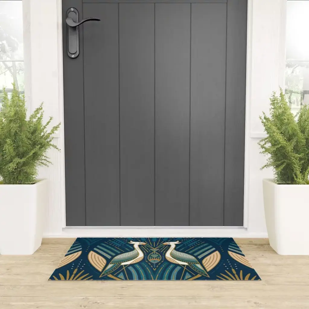 Art Deco Herons - Blue Welcome Mat