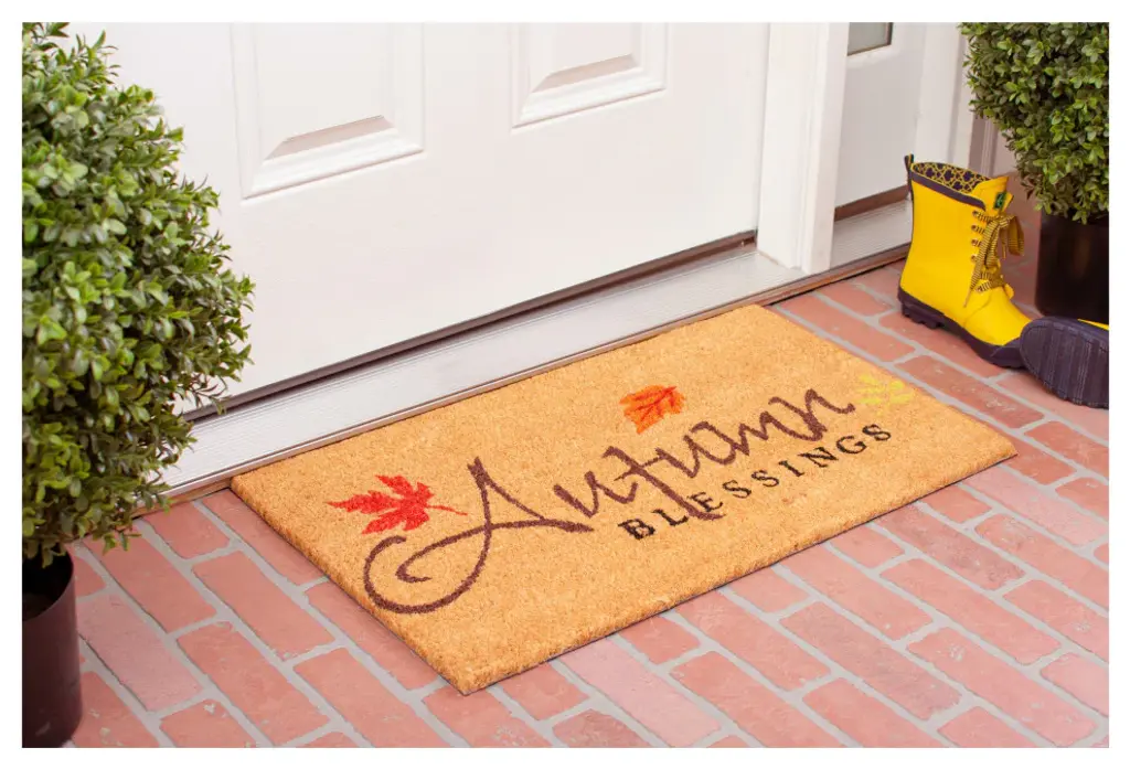 Enhance your entry or patio area with a new doormat that fits your decor and personality. Made of natural coir, a durable, dense fiber that scrapes shoes clean, this mat is vinyl backed for increased durability and to help prevent movement. Weather tolerant and colorfast, coir doormats absorb moisture, retain their shape and will not mat down regardless of the traffic. Vacuum, sweep or lightly hose clean.