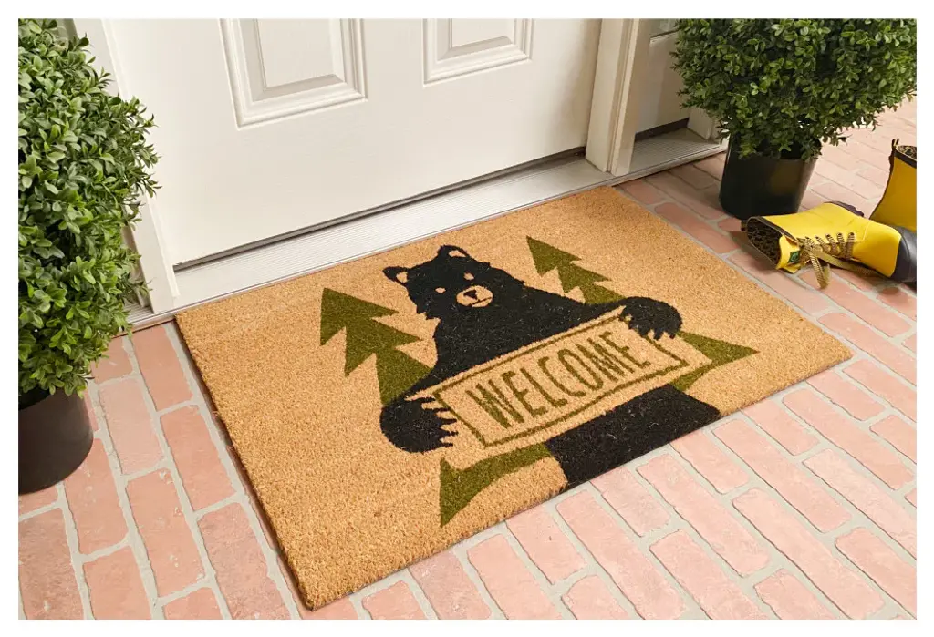 Enhance your entry or patio area with a new doormat that fits your decor and personality. Made of natural coir, a durable, dense fiber that scrapes shoes clean, this mat is vinyl backed for increased durability and to help prevent movement. Weather tolerant and colorfast, coir doormats absorb moisture, retain their shape and will not mat down regardless of the traffic. Vacuum, sweep or lightly hose clean.