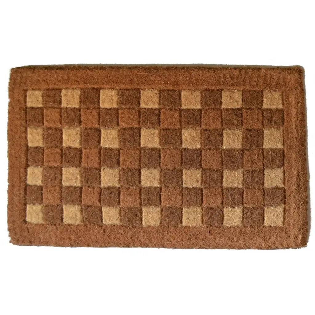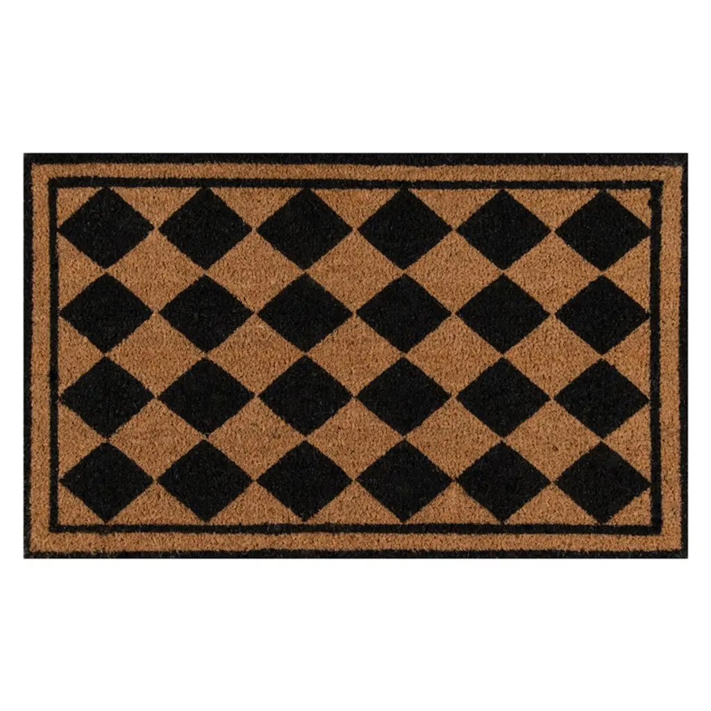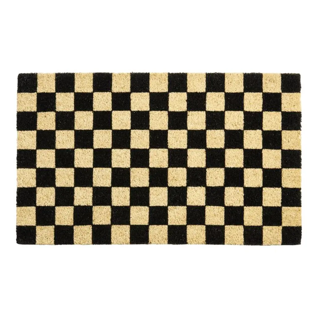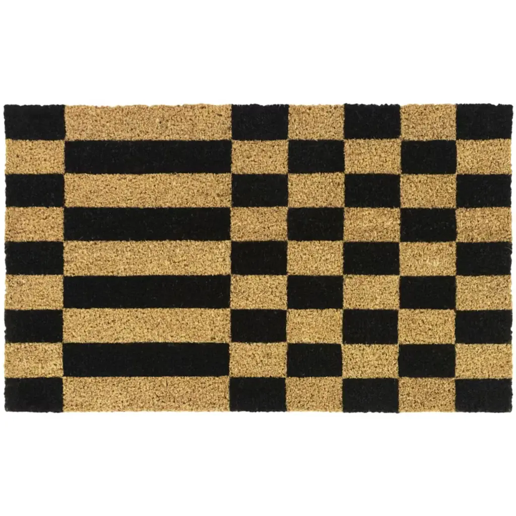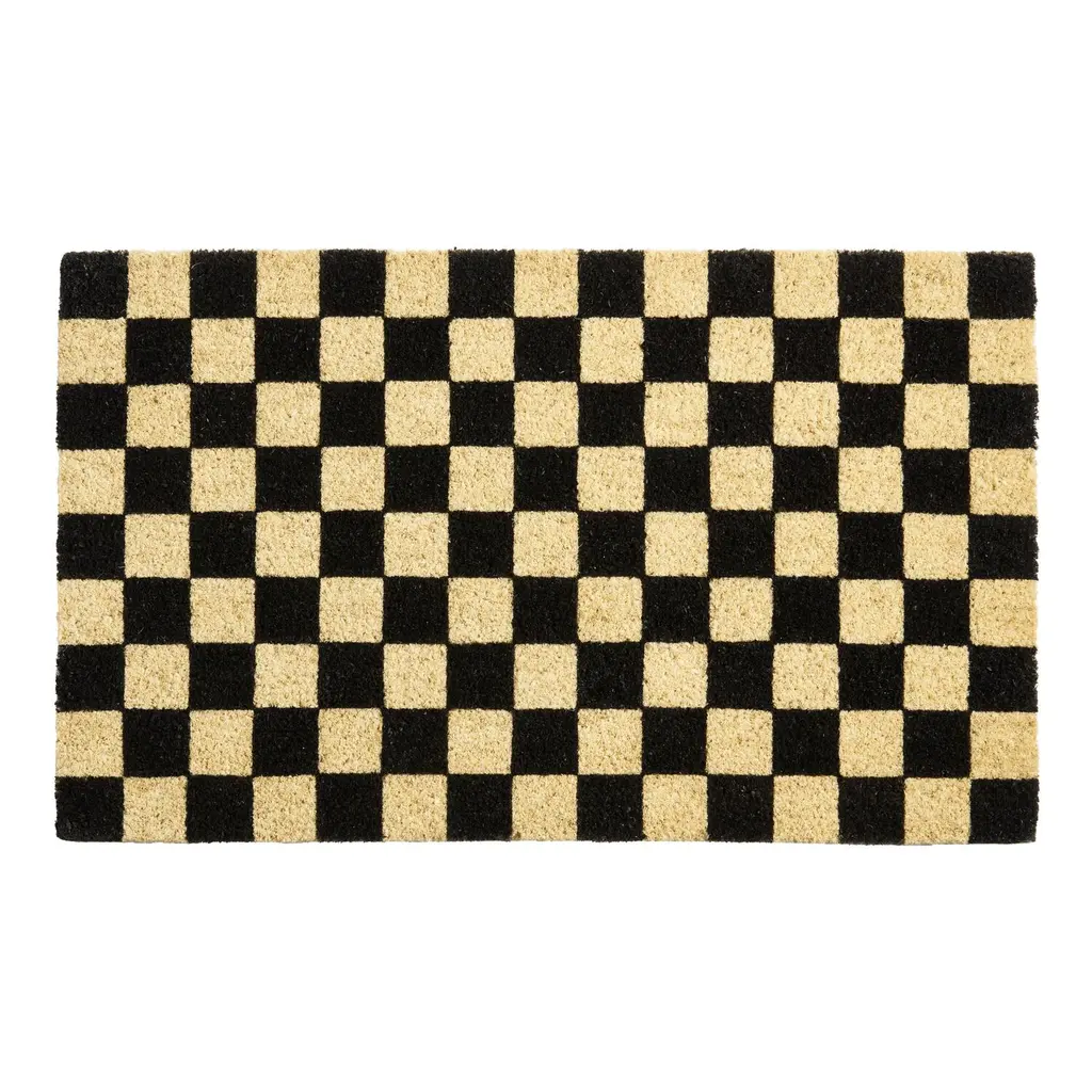 The black and natural checkerboard pattern of our exclusive doormat adds an on-trend look to your porch or patio in a durable coir fabrication. Tufted of natural coconut-husk fibers, this classic checkered doormat is built tough to handle foot traffic for the long term.