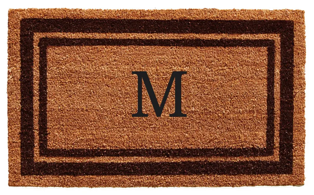 Brighten your home entry with this beautiful monogrammed doormat. Made of natural coir, a durable fiber that scrapes shoe bottoms clean, this doormat has a prominent double border that encases your initial and is vinyl backed to help prevent movement when walked on. Weather tolerant and colorfast, coir doormats absorb moisture, retain their shape and do not mat down regardless of the traffic. Vacuum, shake or lightly hose clean and allow to dry.