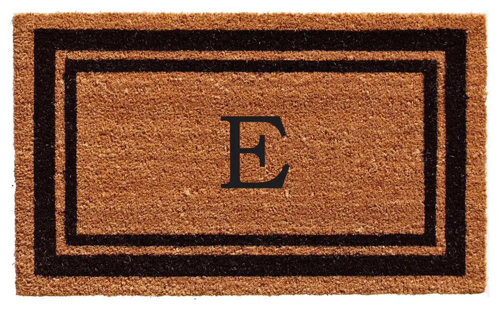 Brighten your entry with this beautiful over-sized monogrammed doormat. Made of natural coir, a durable fiber that scrapes shoe bottoms clean, this doormat has a prominent double border that encases your initial and is vinyl backed to help prevent movement when walked on. Weather tolerant and colorfast, coir doormats absorb moisture, retain their shape and do not mat down regardless of the traffic. Vacuum, shake or lightly hose clean and allow to dry.