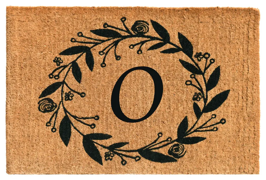 Over-sized for larger areas, this gorgeous monogrammed doormat is expertly made by hand. Made of 100% coir, this durable, heavy-duty fiber is earth friendly, naturally abrasive to scrape shoes clean, retains its shape no matter the foot traffic and absorbs moisture. Height is 1.5" -2", vacuum, sweep or lightly hose clean.