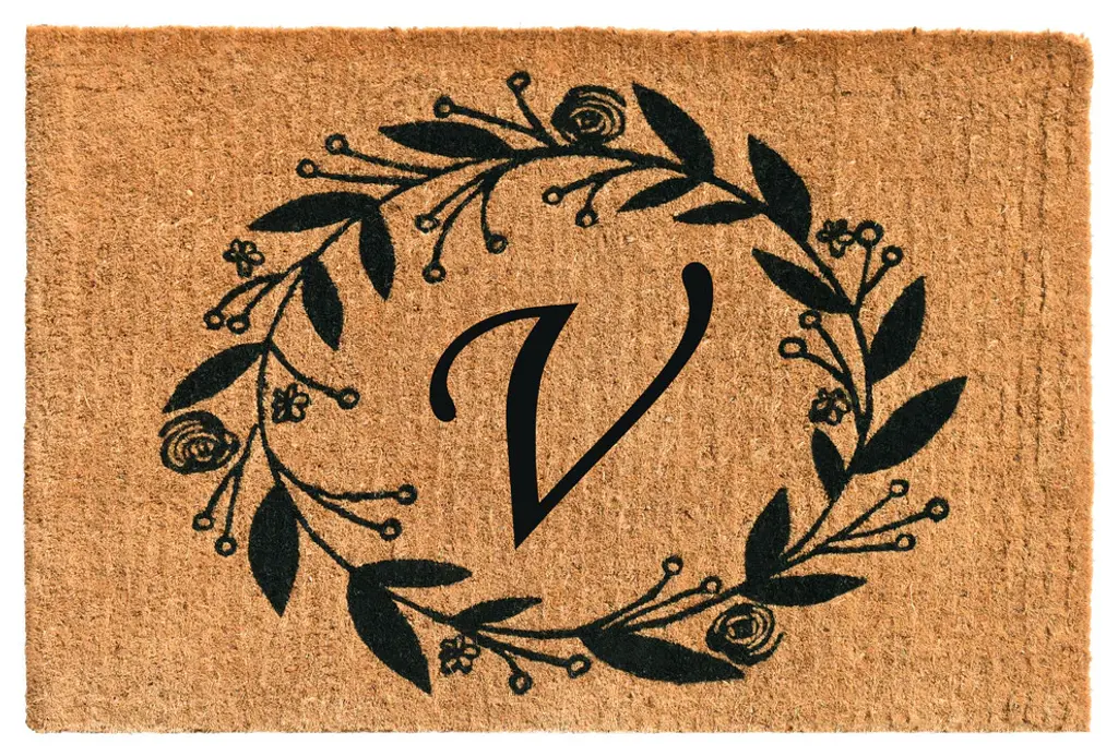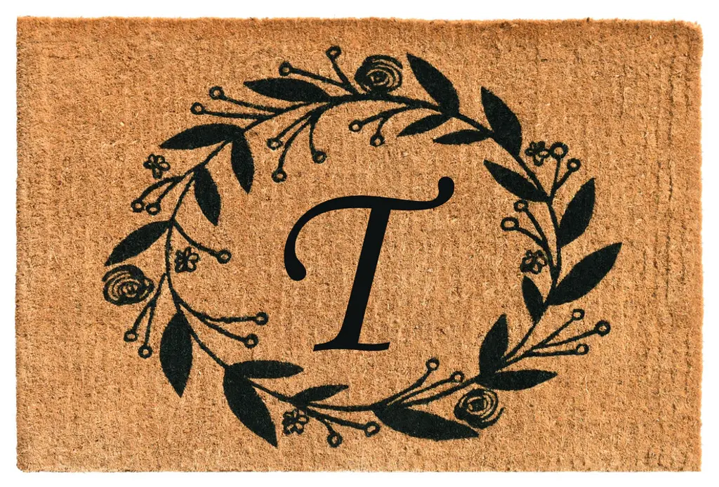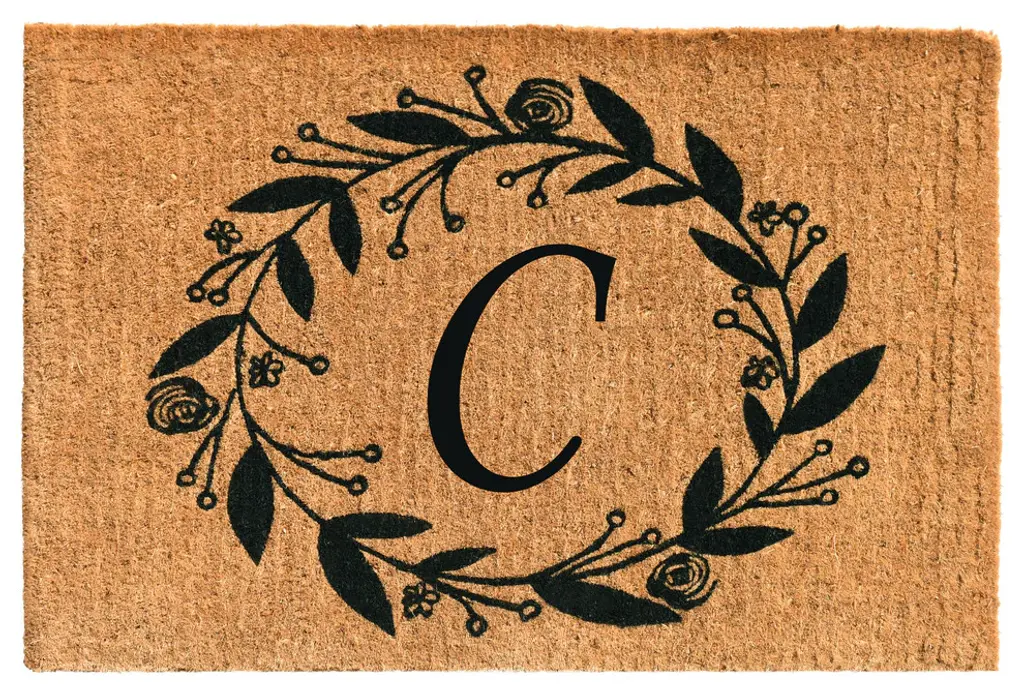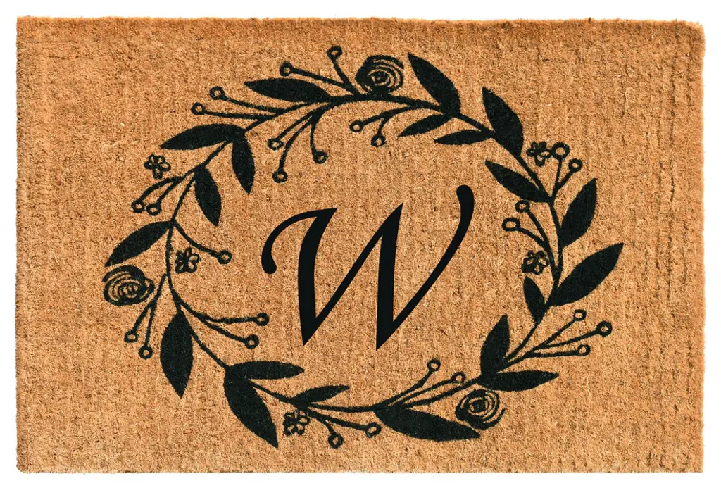 Over-sized for larger areas, this gorgeous monogrammed doormat is expertly made by hand. Made of 100% coir, this durable, heavy-duty fiber is earth friendly, naturally abrasive to scrape shoes clean, retains its shape no matter the foot traffic and absorbs moisture. Height is 1.5" -2", vacuum, sweep or lightly hose clean.