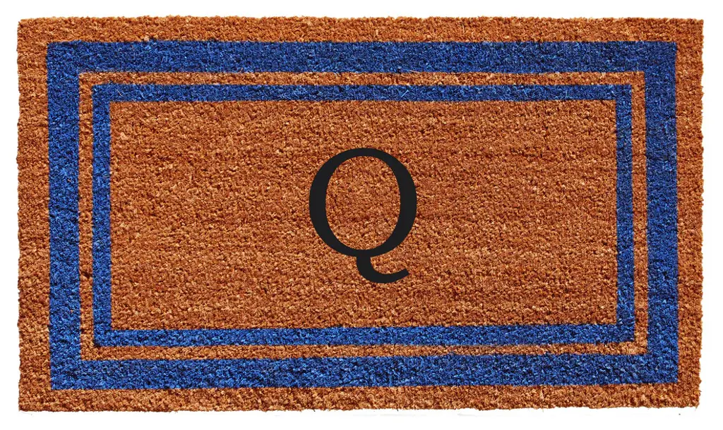 Brighten your entry with this beautiful over-sized monogrammed doormat. Made of natural coir, a durable fiber that scrapes shoe bottoms clean, this doormat has a prominent double border that encases your initial and is vinyl backed to help prevent movement when walked on. Weather tolerant and colorfast, coir doormats absorb moisture, retain their shape and do not mat down regardless of the traffic. Vacuum, shake or lightly hose clean and allow to dry.
