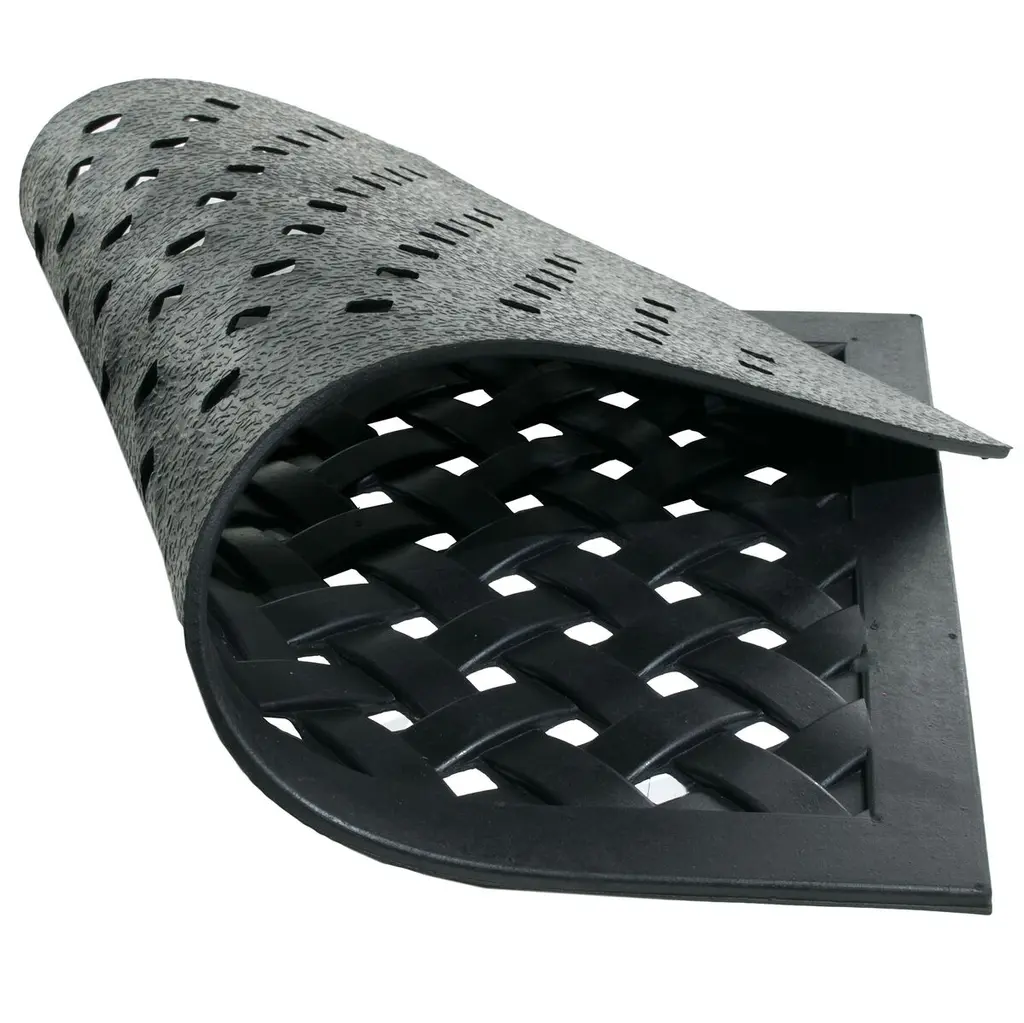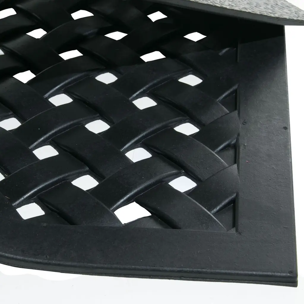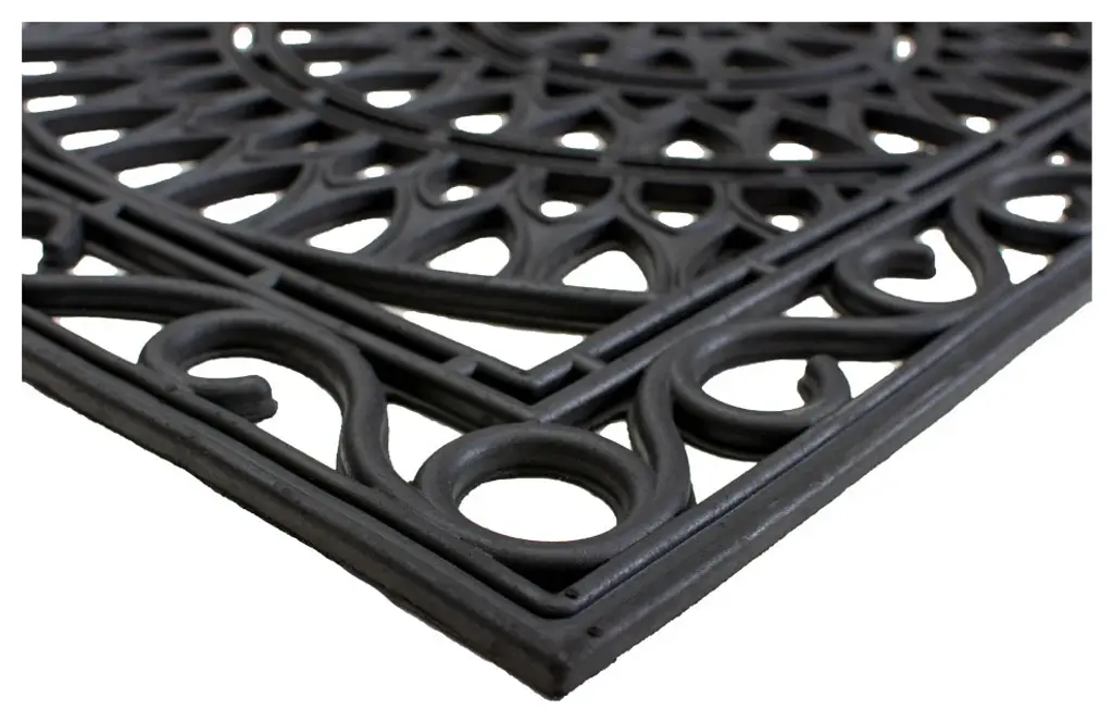 Wrought iron rubber mats combine vulcanized natural rubber and recycled rubber to create an elegant mat that is resistant to dust and skidding, ensuring durability. These mats are ideal for areas exposed to moisture, such as pool sides.