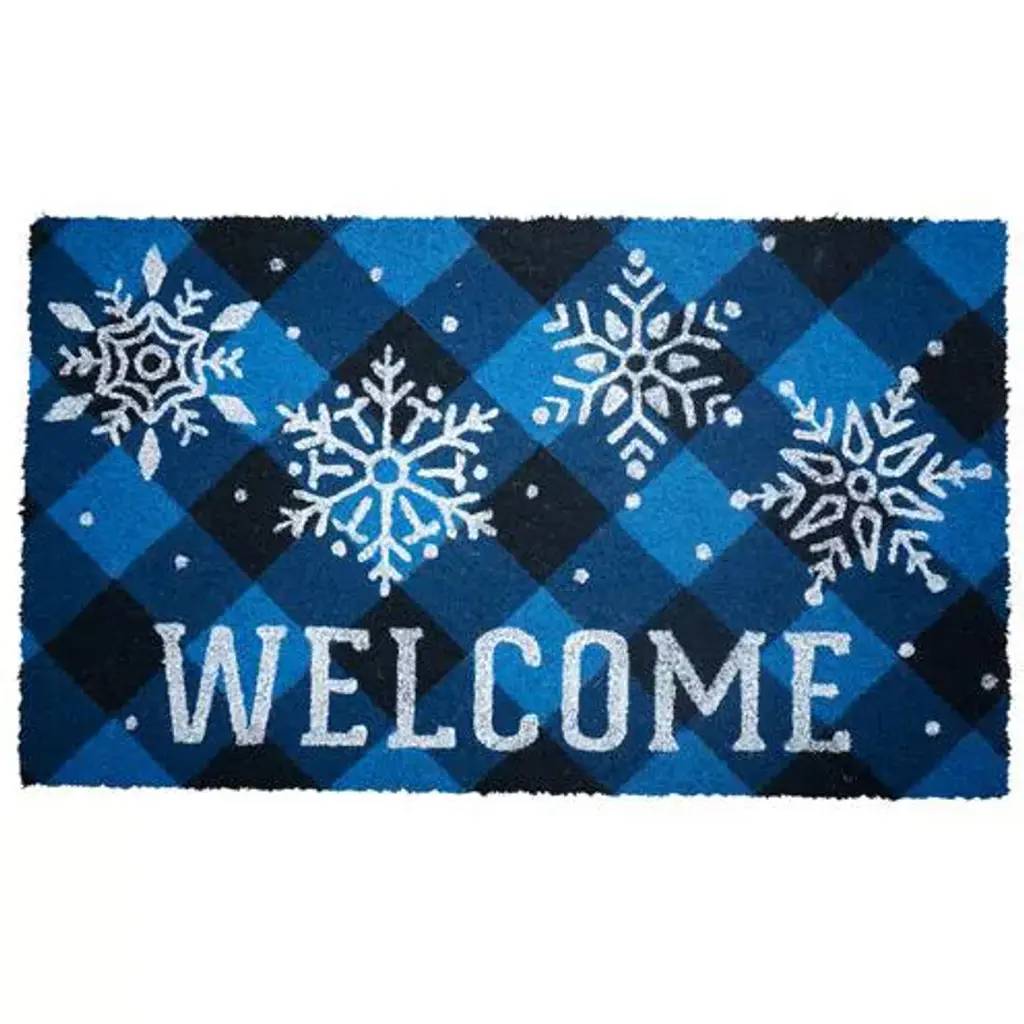 Briarwood Lane Coir Doormat 30x18 Checkered Snowflakes Winter Natural Fiber For Winter Coir Doormat