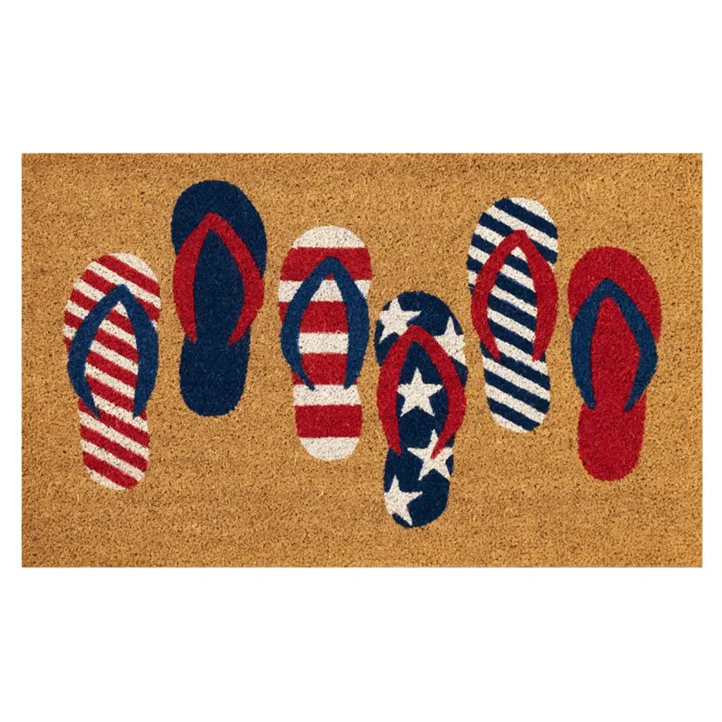 Briarwood Lane Coir Doormat 30x18 Patriotic Flip Flops Summer Natural Fiber Coir Doormat