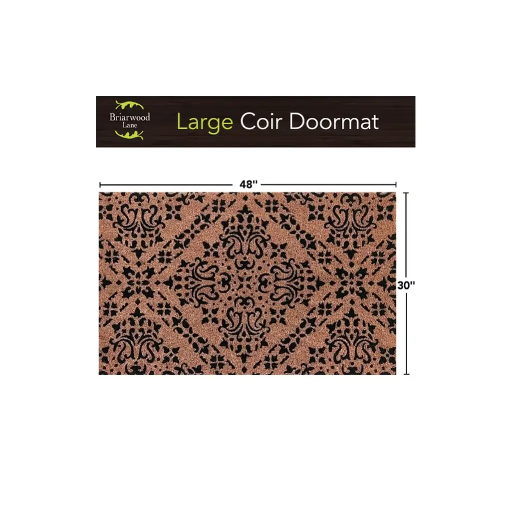 Briarwood Lane Everyday Coir Doormat 48x30 Black Damask Large Coir Doormat