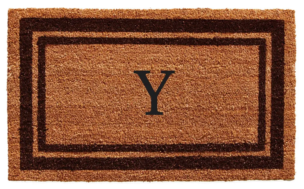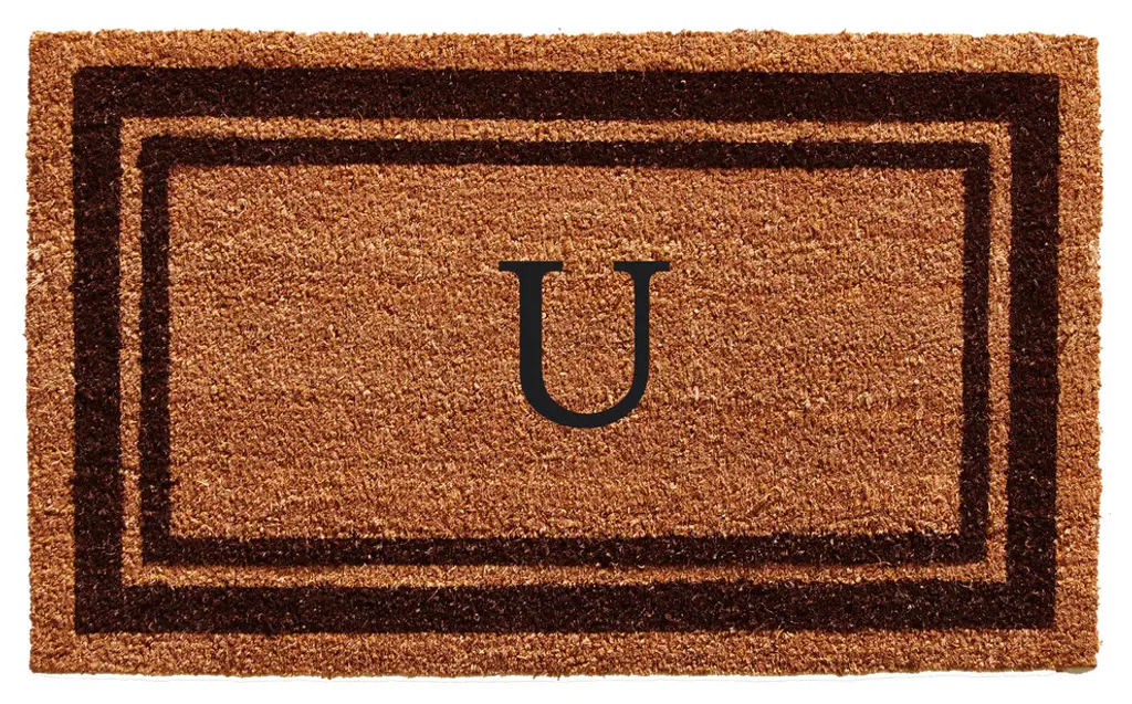 Brighten your home entry with this beautiful monogrammed doormat. Made of natural coir, a durable fiber that scrapes shoe bottoms clean, this doormat has a prominent double border that encases your initial and is vinyl backed to help prevent movement when walked on. Weather tolerant and colorfast, coir doormats absorb moisture, retain their shape and do not mat down regardless of the traffic. Vacuum, shake or lightly hose clean and allow to dry.
